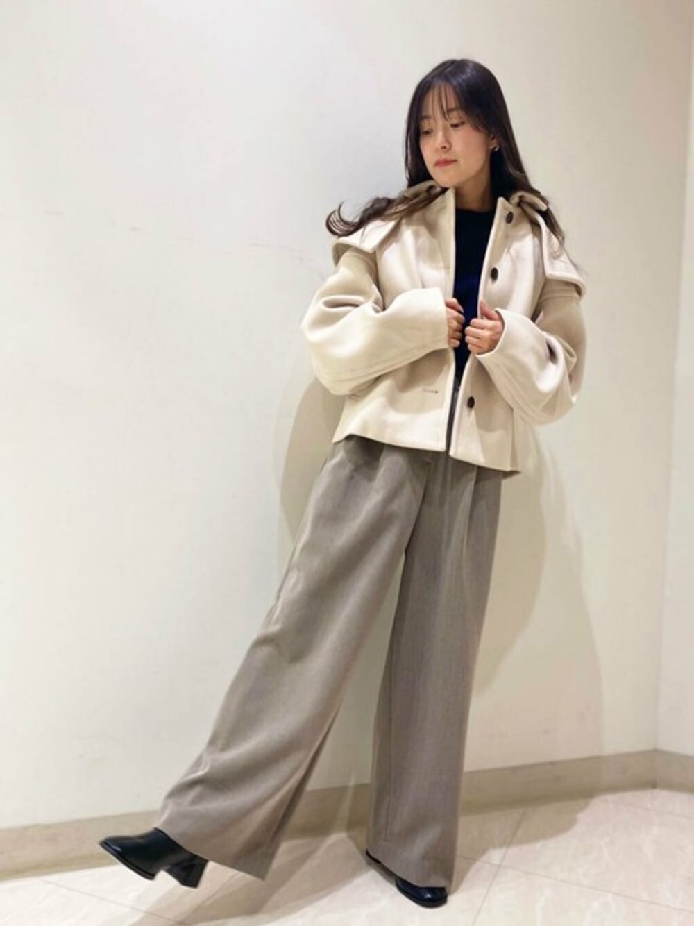 落ち感を演出してくれる大人シルエットでリラックス感のあるパンツです。カジュアルになりすぎないワイドシルエット◎ ショートコートと合わせることでスッキリとした着こなしができます♪ ︎︎20代前半/イエベ秋︎︎︎︎