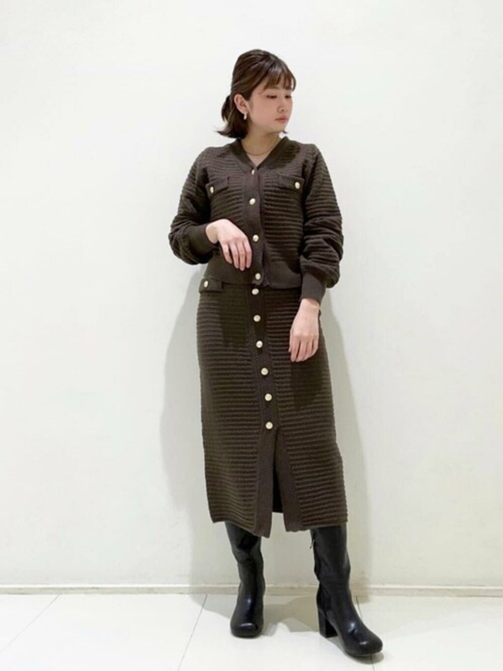 【POINT 】ゴールドボタンがポイントになるツイードニットセットアップ♩セットアップはもちろん単品使いでもサマになるアイテムです♡ツイード風なデザインで今年らしいトレンド感もあります。また、アイラインのシルエットが強調されるのでスタイル良くみせてくれるのも嬉しいポイントです♡*****年齢20代前半/158cm/普通サイズM /パーソナルカラー:ブルベ冬*****