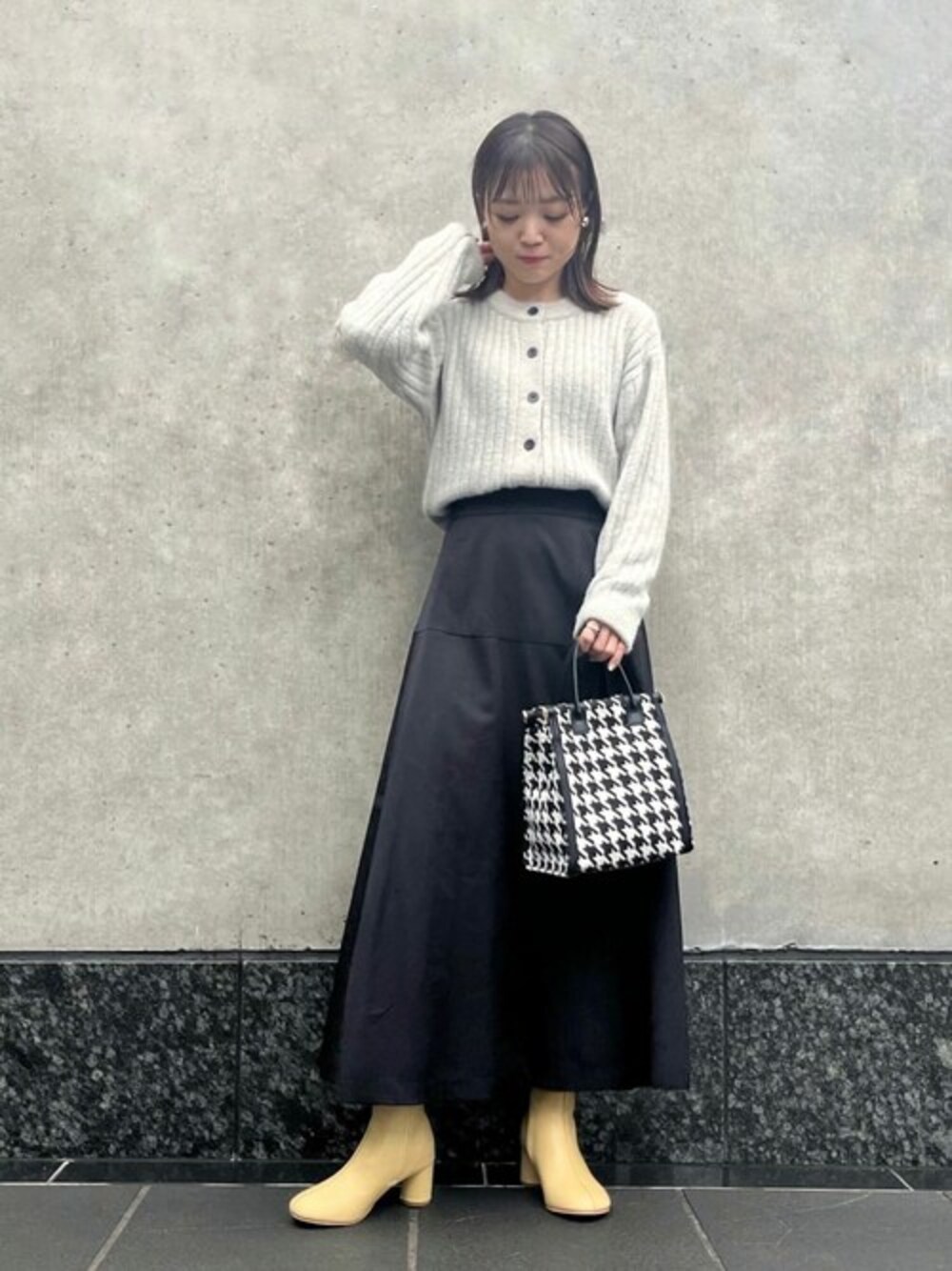 ふわふわの風合いがかわいいカーディガン♡ 少し短めの丈なのでアウトスタイルでもバランス良くお召しいただけます◎ お家で洗えるのも嬉しいポイント。スカートはアシンメトリーの切り替えで腰回りはスッキリ見せつつ、程よいボリューム感が大人可愛い1枚☻ ***157cm / 骨格ウェーブ / ブルベ夏***