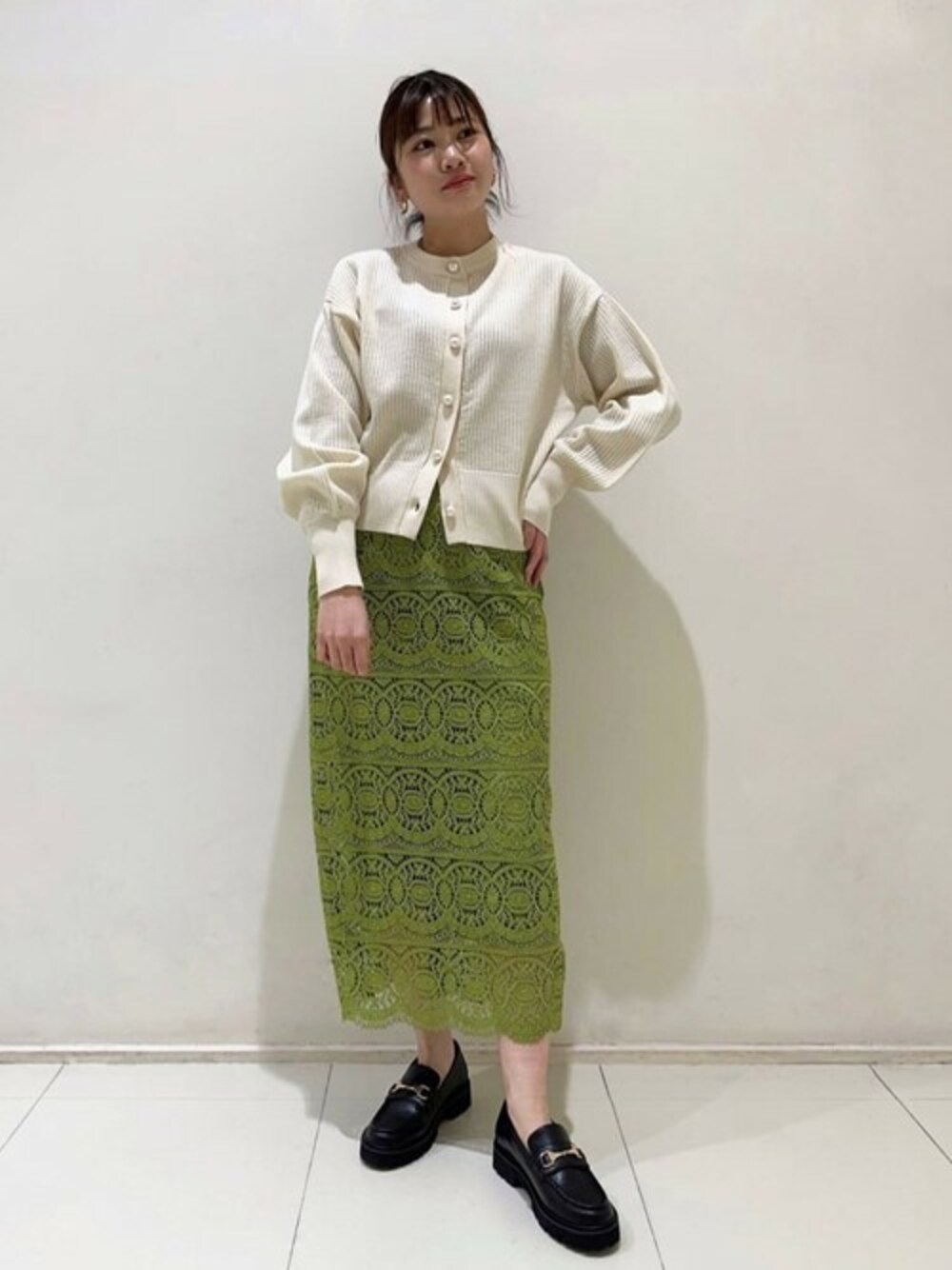 【POINT 】 春にピッタリなスカラレースタイトスカート。サークル状のレースデザインがポイントになる可愛い1枚です。レースですがタイトなシルエットなので甘くなりすぎず大人カジュアルにも着こなして頂けます♪後ろにスリットが施されており窮屈感なく動きやすいところも嬉しいポイントです♪春先取りにピッタリなイチオシスカートです♡*****年齢20代前半/158cm/普通サイズM /パーソナルカラー:ブルベウィンター*****