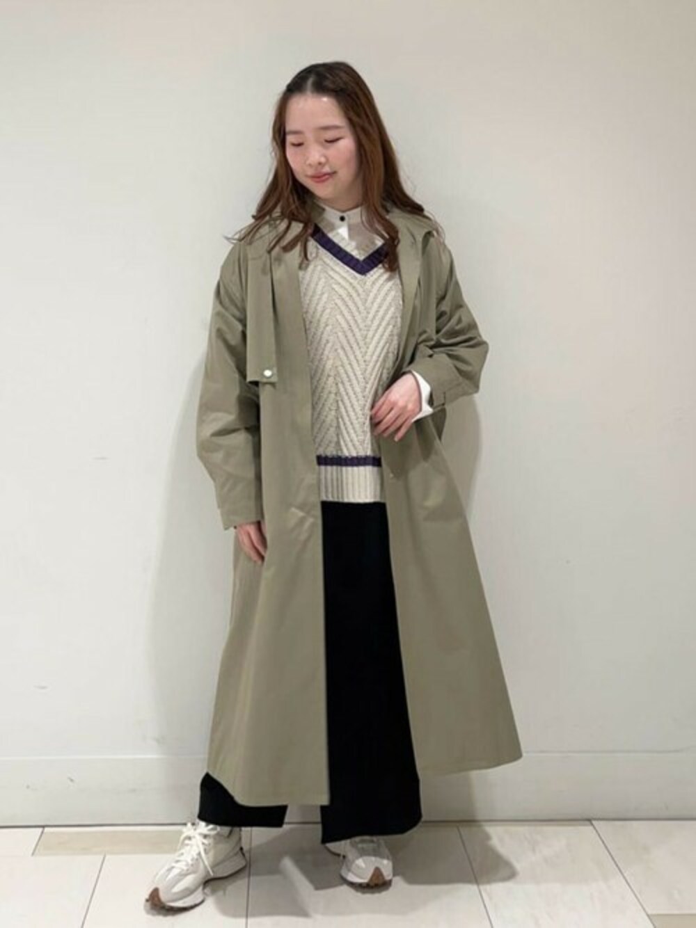 デザインが今年らしくお好みのスタイリングに合わせらる万能コート!着丈や身頃も程よくゆとりがあり、長めの丈のボトムスやワンピースともバランスが取りやすいです。オーバーサイズなサイズ感も今年らしさがあります。首元はスタンドカバーにして前のボタンを全て閉じてもスタイリッシュな印象に◎今回のインナーコーデはベストとタイトスカートで大人カジュアルコーデに仕上げました!159cm/骨格ストレート/ブルベ夏/20代前半/着用Mサイズ