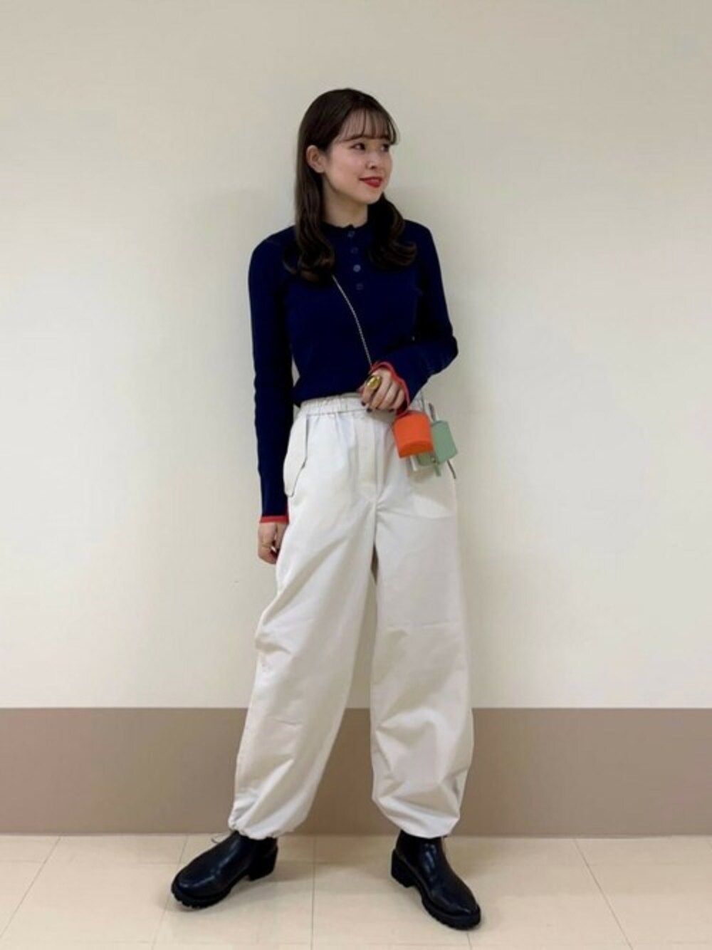 【オススメカジュアルコーデ】パラシュートパンツは立体的なフォルムに映り、履きやすさ抜群です◎ですが、ボリュームが出過ぎることなく程よいカジュアルお洒落アイテムです!コンパクトなポロニットで合わせることにより、メリハリを付けて大人カジュアルに合わせてみました!****年齢20代前半/身長166cm/普通サイズM.L/パーソナルカラーイエベ春/骨格ストレート****