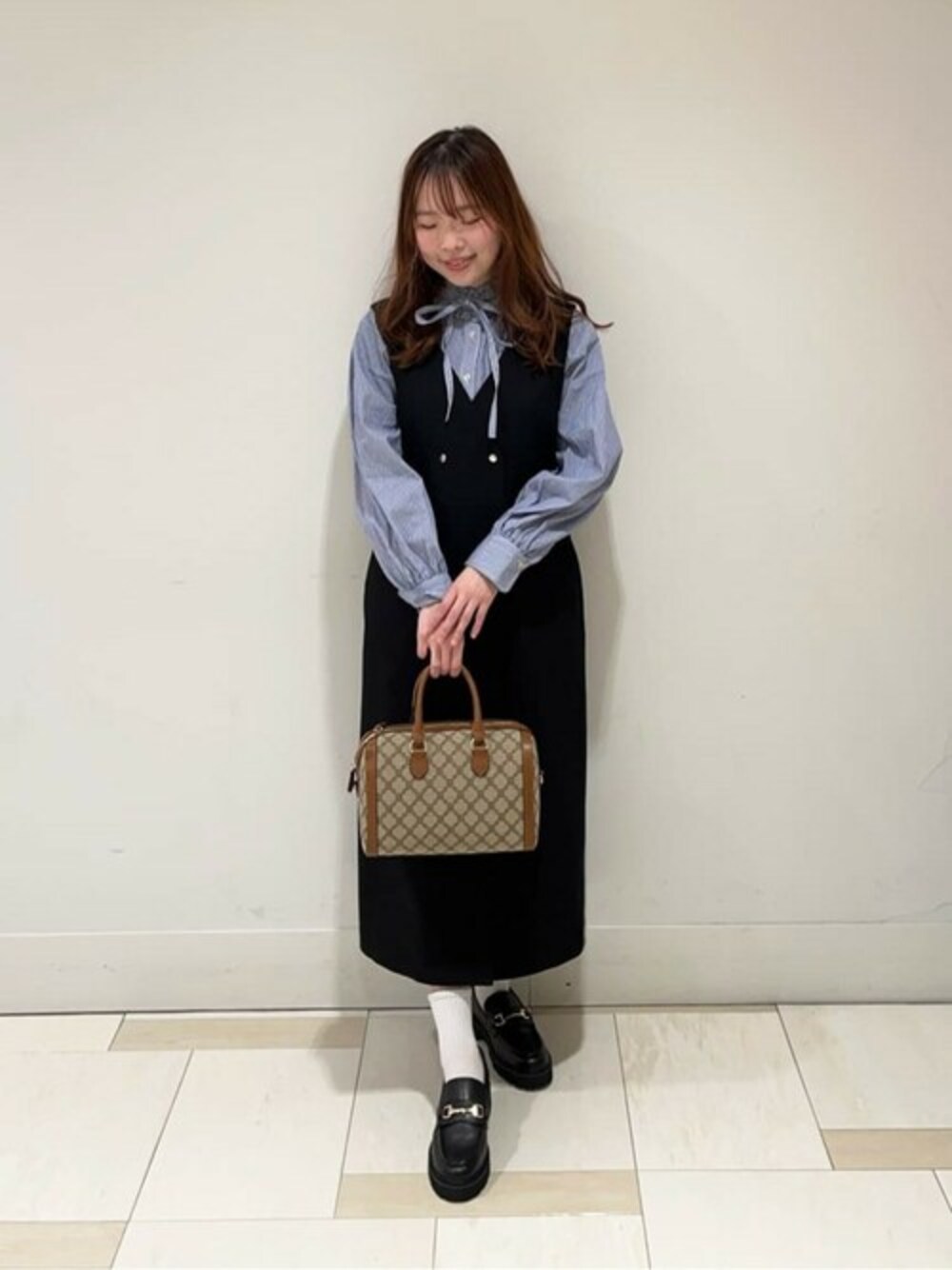 N.で大人気のアイテムが再入荷しました☺︎シーズンレスで使えるジャンスカは1枚あると安心するアイテム。インナー次第で雰囲気変わるので、お手持ちのアイテムとも合わせやすいです!今回は今年トレンドのリボンタイが付いてる春らしいストライプブラウス合わせて大人可愛いスタイリングに❤︎こちらのブラウスもコットン素材でサラッとしているので夏手前まで使えます!