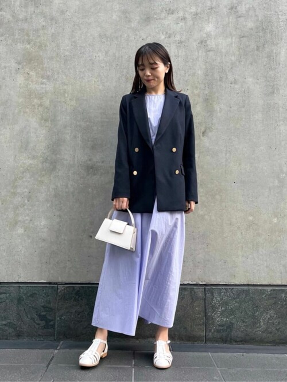 春カラーが可愛いワンピースコーデ☻ タイプライター素材で透けにくく、裏地無しでも安心。サラッとした肌触りで気温が上がってきてからも大活躍間違いなしです◎ ポルタでは150cmのお客様も、手持ちの低めのヒールと合わせてピッタリ♪と購入されており、小柄な方にもオススメです!***157cm / 骨格ウェーブ / ブルベ夏***