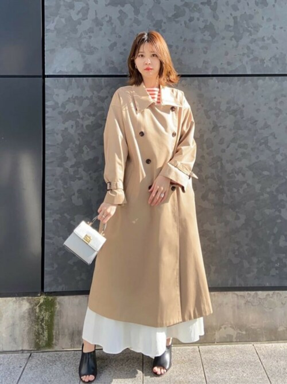 トレンチコート×ワンピースのコーデです♡ 店頭でも大人気のオーバーサイズトレンチコートは生地がしっかりしていますが、柔らかさもあるのでごわつかず楽にお召し頂けます。 シルエットを拾いにくいのも嬉しいポイントです☺︎ **身長:166cm/骨格:ウェーブ/パーソナルカラー:イエベ秋**
