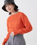 【POINT】見頃や袖にかけて表情の変わる柄編みデザインが可愛い1枚です♩さり気ない透かし柄デザインで春らしく抜け感も出せます。ピタッとせず程よくゆとりがあるのでラインを拾わず着心地も良いです♩特にオレンジはアウターのインナー使いとして差し色になるオススメのカラーです♡*****年齢20代前半/158cm/普通サイズM /パーソナルカラー:ブルベウィンター*****