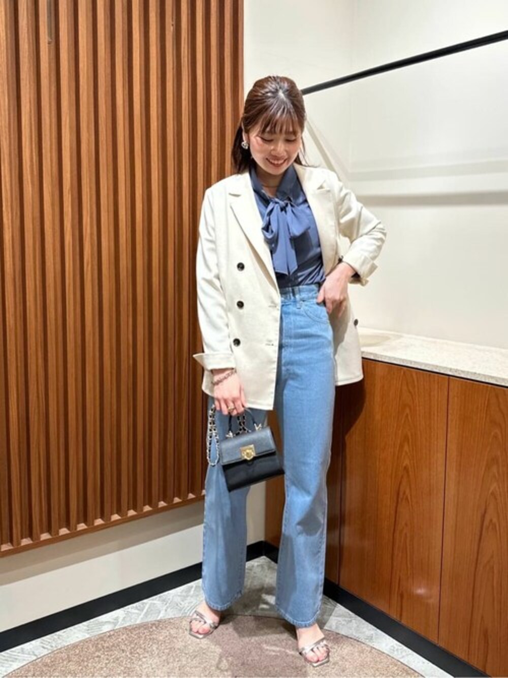 【POINT 】 オンオフ着回し万能♪前後2wayボウタイリボンブラウス。前後2wayなので気分やシーンによって雰囲気を変えて使える嬉しい1枚です♡お袖もタプっとふんわりしているので大人フェミニンにお召し頂けます♪タイトスカートやフレアスカートを合わせると通勤コーデにもお使い頂けます!*****年齢20代前半/158cm/普通サイズM /パーソナルカラー:ブルベウィンター*****