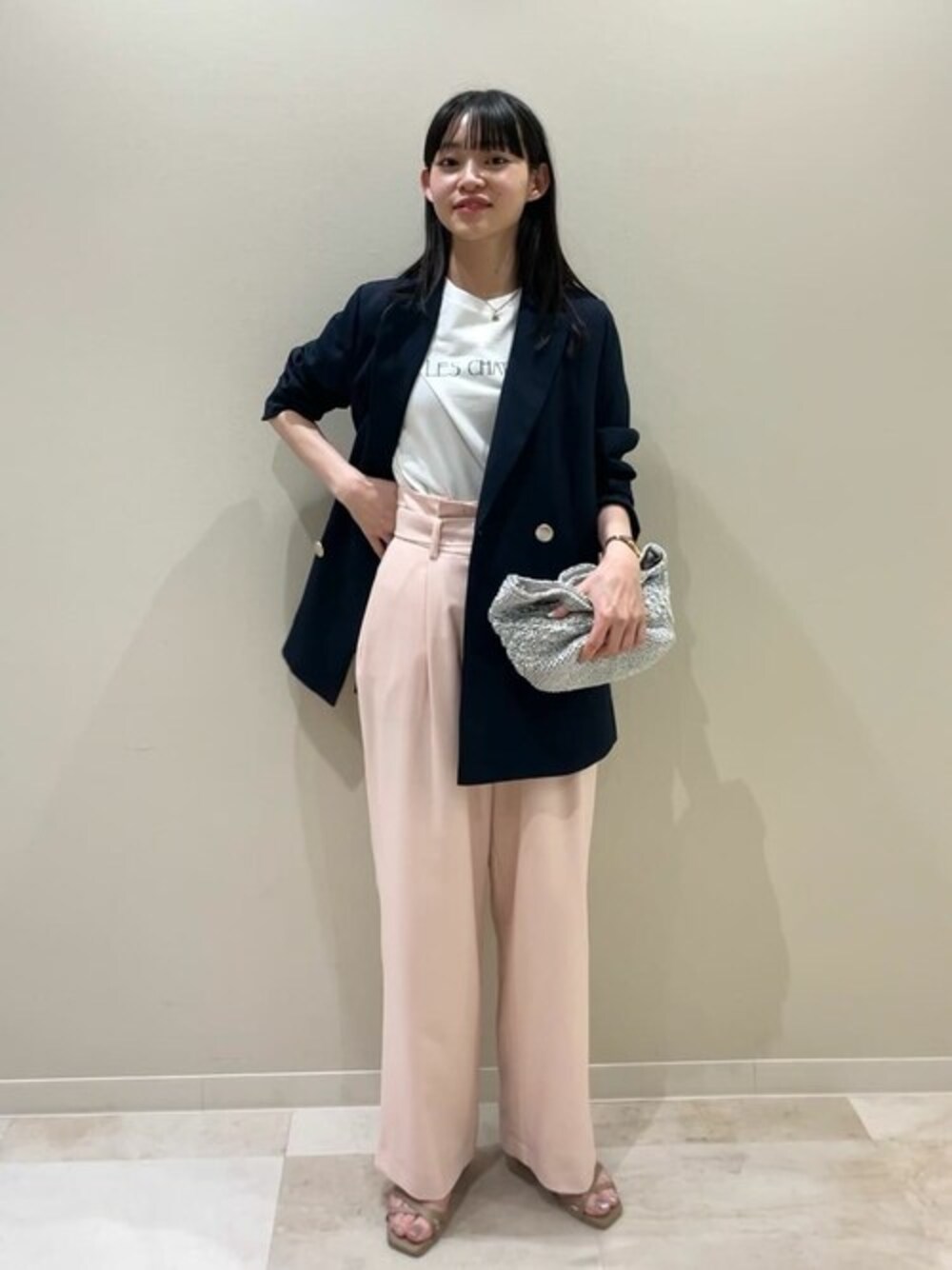 ジャケットを使ったカジュアルコーデ。 グリーンのロゴに淡いピンクのパンツで春らしいカラー使いで定番ながらも華やかなパンツスタイルに。 ハイウエストのパンツは長めの着丈の羽織でも重心を上に見せスタイルアップを叶えてくれます⌾