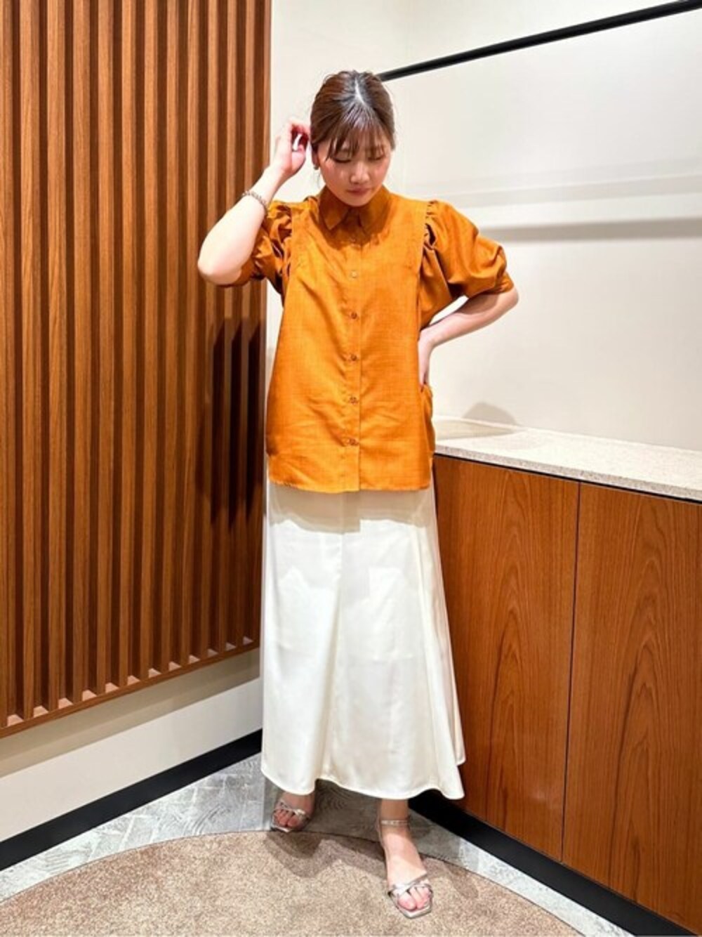 N. STAFF(N. Natural Beauty Basic* OFFICE)のスカート「【S Size Line】サテンナロースカート」を使ったコーディネート