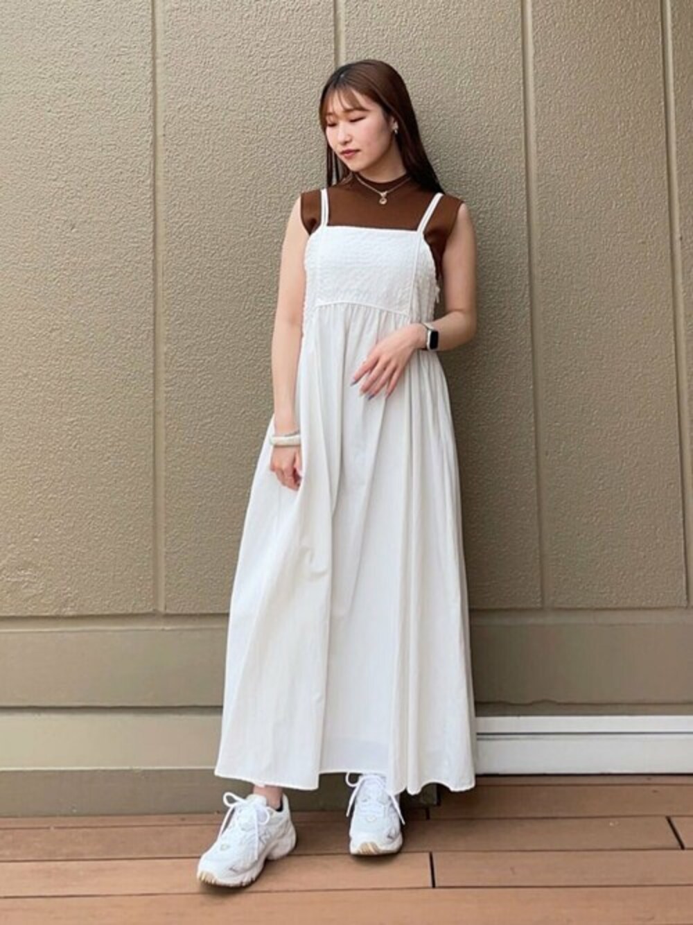 【ニット・ワンピース:ワンサイズ】N.で大人気のキャミワンピースが再入荷しました!今回はスニーカー合わせでカジュアルに合わせました♪インナー次第で季節の変わり目にも大活躍するので1着持っていて間違いないアイテムです♡ *****20代前半/157cm/ブルベ夏/骨格ウェーブ*****