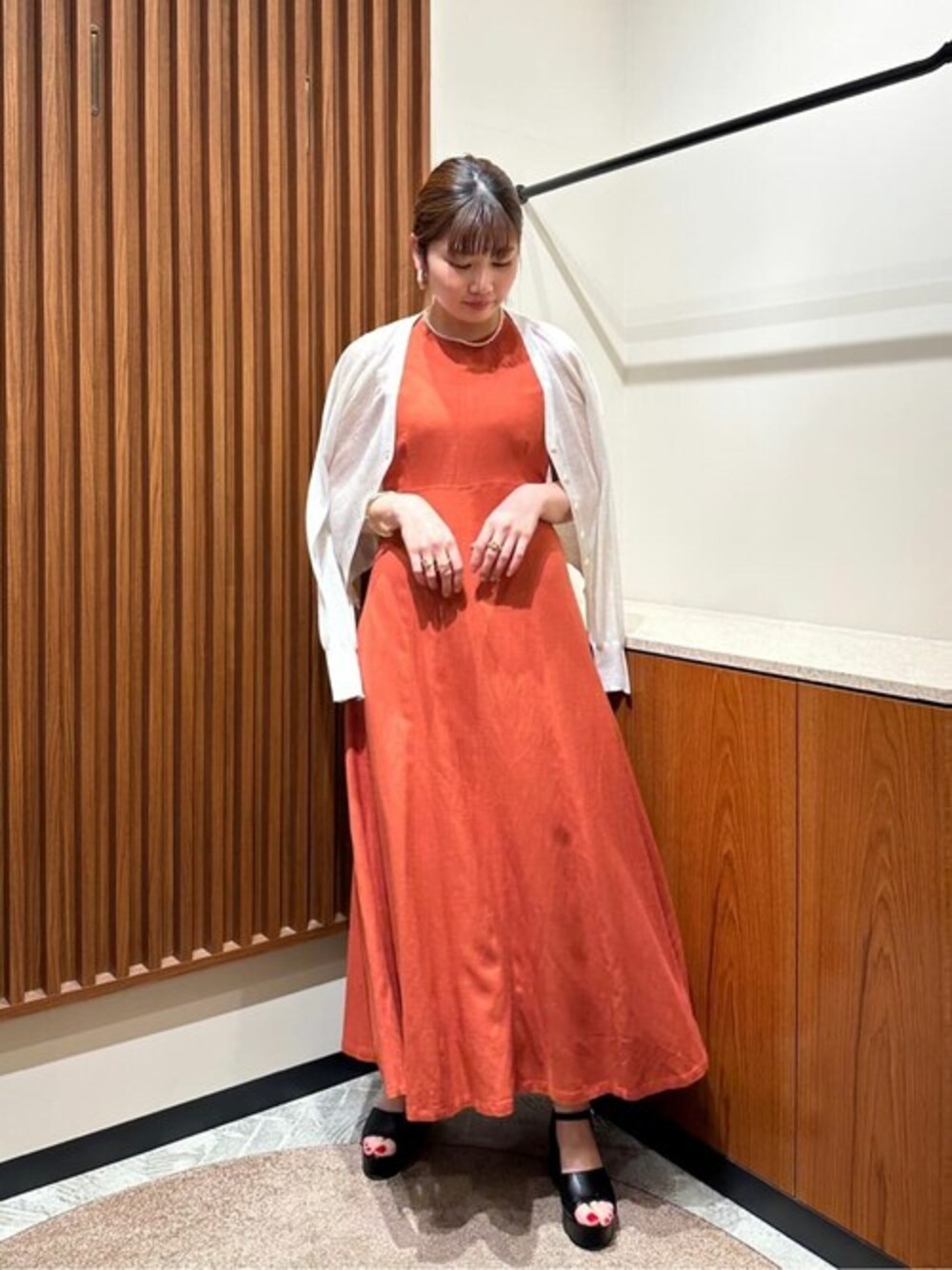 【素材感、着心地】 レーヨン、麻素材で滑らかなサラッとした素材感です。どちらも通気性が良い素材なので真夏でも涼しくお召し頂けます♪ 【サイズ感】 158cm、Mサイズ着用。 Mサイズだと足首少し上のロング丈なので平均身長の方はどちらでも◎ 胸下の高い位置で切り替えがあり細見えしますが身幅にはゆとりがありラインも拾わないです! 【スタイリングポイント】 トレンドの厚底サンダルを合わせた大人のリラックスカジュアルコーデにしました♪厚底以外にもお出かけやリゾートにはスポサンやスニーカー合わせも可愛く決まります♡ ****年齢20代前半/158cm/普通サイズM /パーソナルカラー:ブルベ冬/骨格ストレート/足のサイズ:23.5*****
