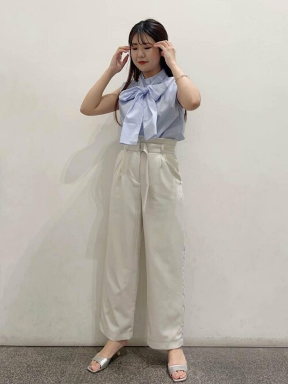 N. STAFF(N. Natural Beauty Basic* OFFICE)のシャツ/ブラウス「◆ビッグボウタイノースリーブブラウス」を使ったコーディネート