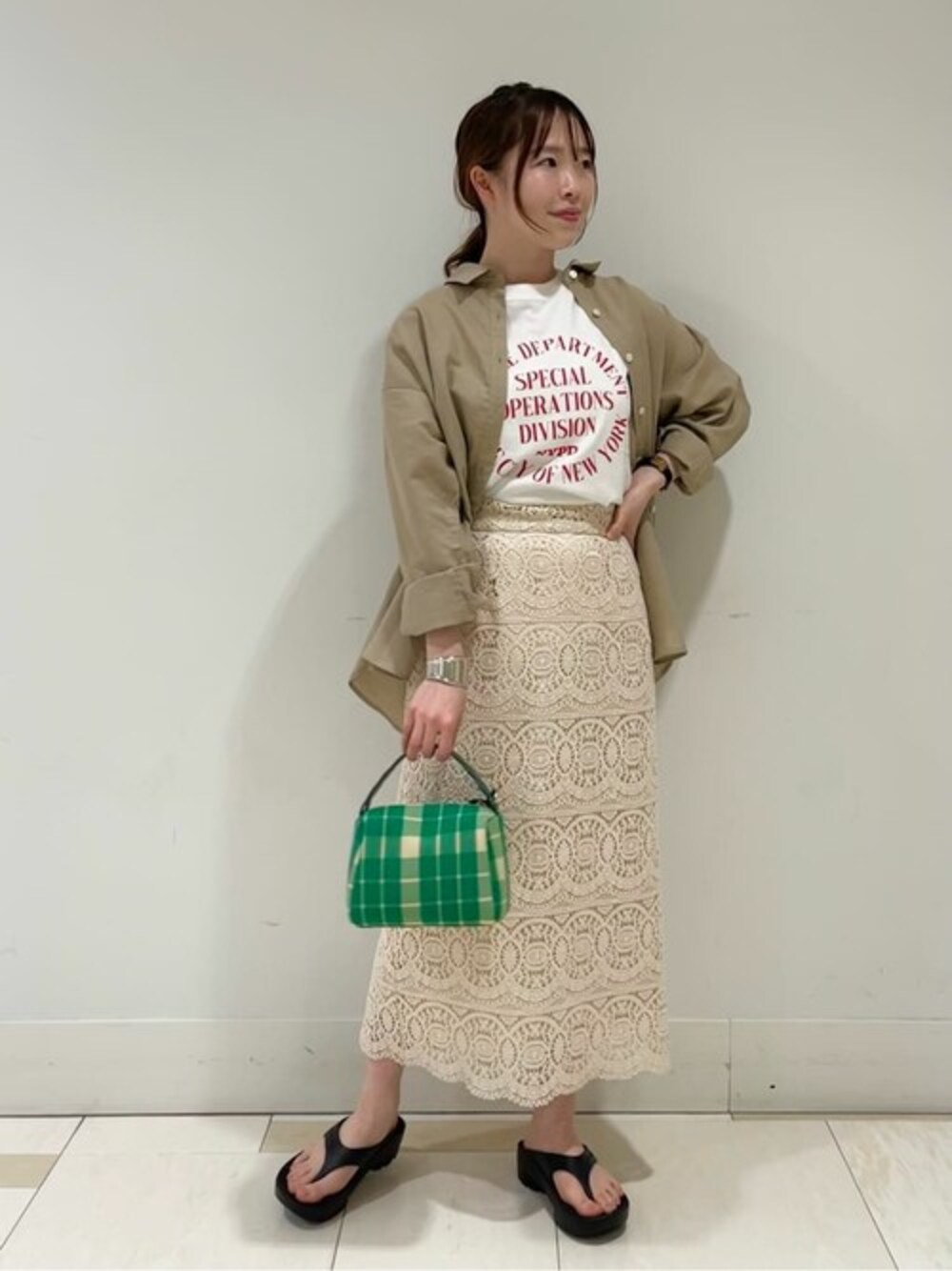 フェミニンな印象のあるレーススカートを休日の大人カジュアルに仕上げたコーデにしました♬ 甘くなりすぎないレースの模様なので、カジュアルのラフなスタイリングにもマッチしやすいです!足先が少し透け感があるので、丈感気になる方でも軽やかな印象でお召し頂けます!身長159cmでくるぶし上になるので小柄な方はSサイズもあるので合わせやすいと思います!ON.OFF兼用で使えるので、お手元のお洋服とも着こなししやすいです☺︎