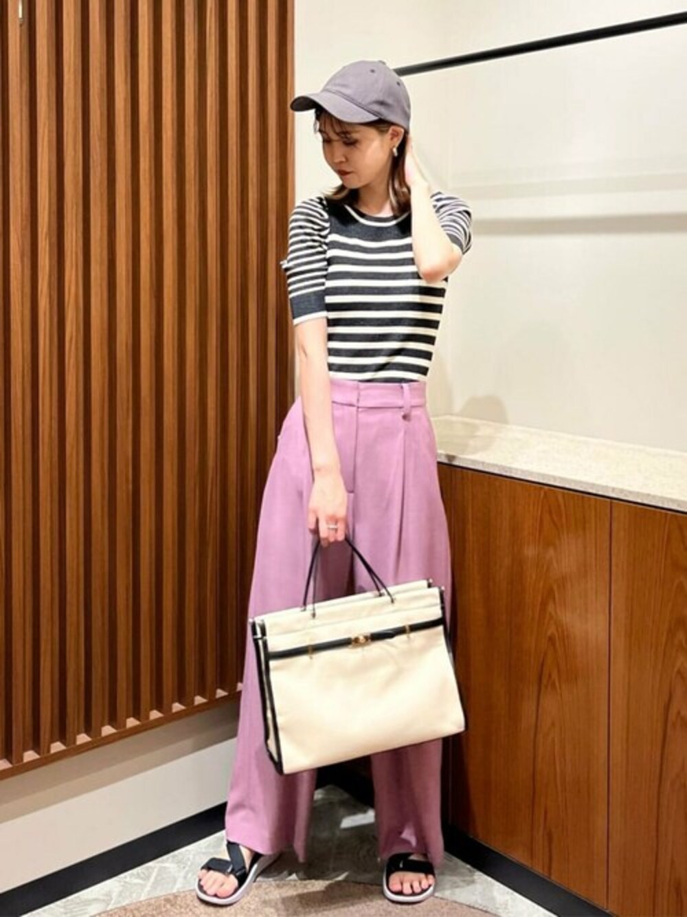 【素材感、着心地】 少しラメの入った素材ですが、チクチク感もなく着用できました! 伸縮性があるので程よくフィットする素材です。 透け感は無いのでインナーの透けもなく着用できました! 袖口はコンパクトですが、締め付け感はなかったです 袖が程よいボリューム感なのでフェミニンすぎずに着用できました♡ お洗濯もできます◎ 【サイズ感】 166cmで腰下の丈感です⠀ 【スタイリングポイント】 フェミニンさのあるニットなので、足元とキャップで甘辛ミックスのコーディネートにしました! **年齢:20代前半/身長:166cm/骨格:ウェーブ/パーソナルカラー:イエベ秋**