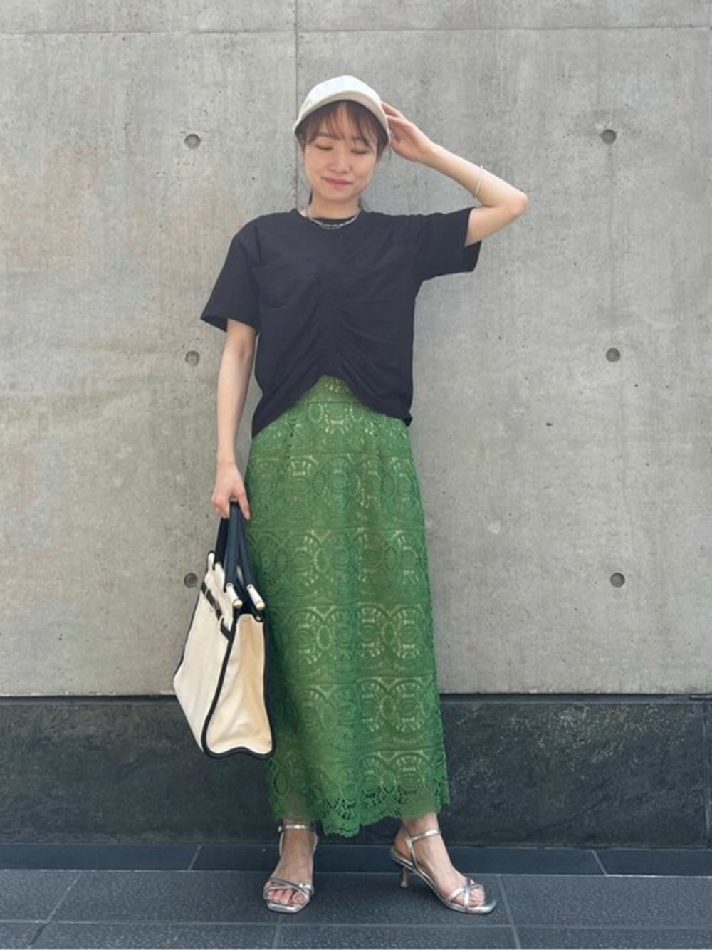 【カットソー/Mサイズ着用】 148cm、骨盤あたりの丈感でボトムにインせずスッキリ着れるTシャツです。ビスチェのようなデザインが新鮮でかわいいです☺︎コットンとポリエステルの素材なので柔らかさとハリ感のバランスがちょうどよいです! 【スカート/Sサイズ着用】 ウエストにフィット感があり小柄さんにもオススメです。サークル状のレースが甘くなりすぎずカジュアルスタイルにもよく合います◎ **148cm/骨格ウェーブ/ブルベ夏**