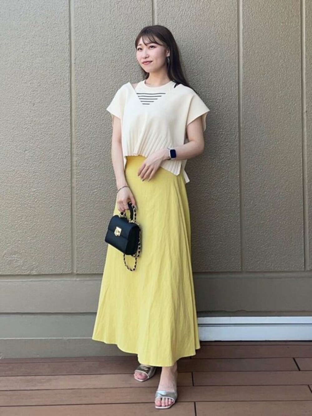 【ニット:ワンサイズ、スカート:M(S/M)】程良い肌見せができるトップス♪タンクトップ単体でお持ちのシャツやカーディガンと合わせても一気にトレンド感が出るのでオススメです♡スカートは生地がたっぷり使われているので、動いた時の揺れ感が可愛いです!*****20代前半/157cm/ブルベ夏/骨格ウェーブ*****