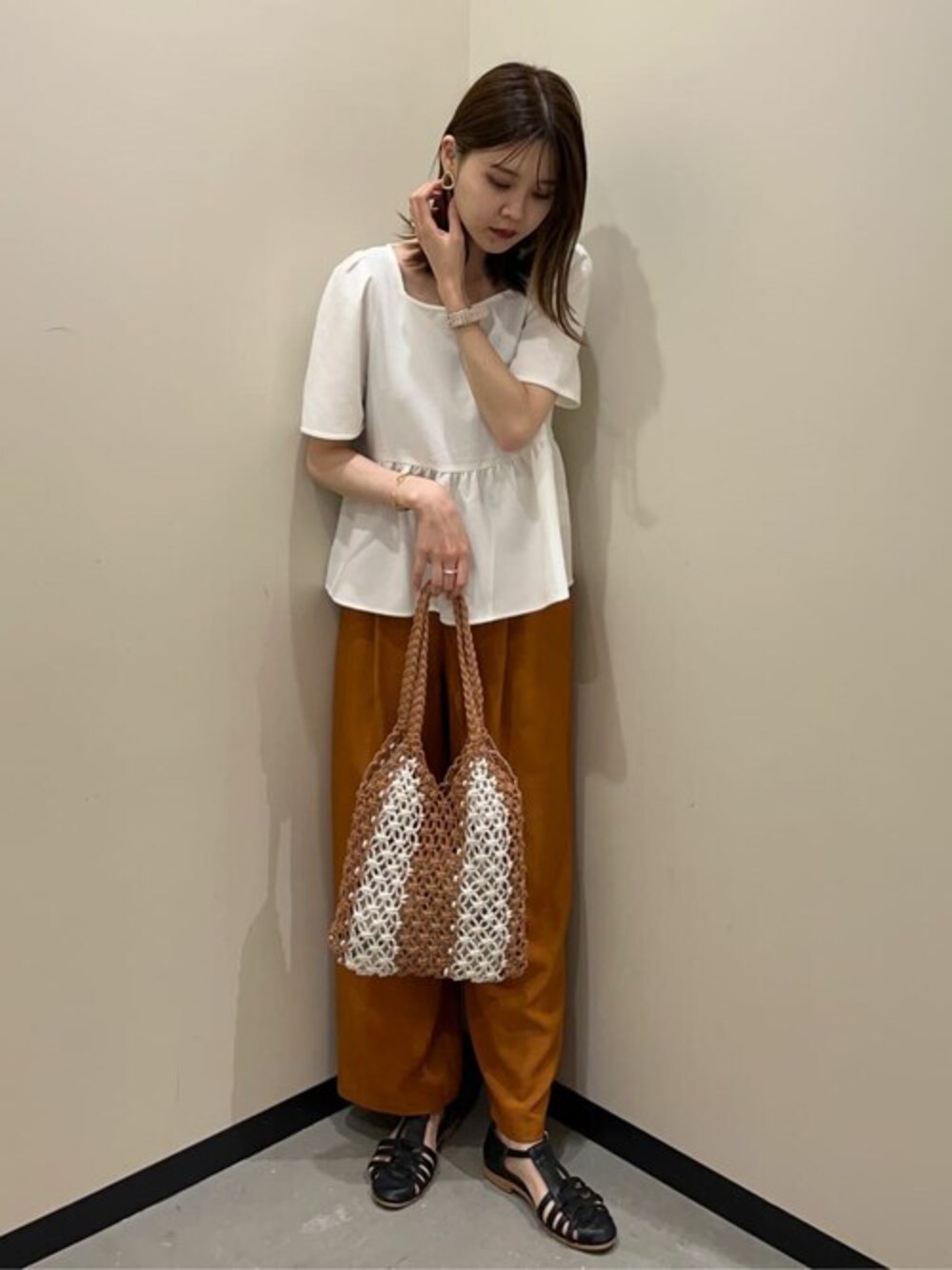 【素材感、着心地】 凹凸感のある素材で、軽やかなベタつきのない着心地なので汗染みも気になりませんでした◎ 鎖骨下のスクエアネックなので、胸元の華奢さも気にせず着用できました! お家でお洗濯ができるのでお手入れも楽です♪ 【サイズ感】 166cmでヒップ上の丈感です 【スタイリングポイント】 ペプラムのデザインなのでボトムにすっきりとしたパンツを合わせて、Iラインを意識したコーディネートにしました! 年齢:20代前半/身長:166cm/骨格:ウェーブ/パーソナルカラー:イエベ秋**