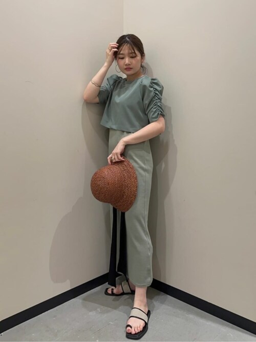 【クロップドブラウスセットワンピース】 【素材感、着心地】 ブラウスとワンピースで素材が異なります。ブラウスはツルッとやや光沢感のあるポリエステル素材です。ワンピースはカットソーのような柔らかい素材感です♩ 【サイズ感】 Mワンサイズ。ブラウスは後ろ身のストラップで背中の空き具合や首元の詰まりも調整可能です。ワンピースはタイトなシルエットですが伸縮性があるので動きやすく着心地◎ 【スタイリングポイント】 合わせる小物によりキレイ見えもしますが私はフラットサンダルとハットで大人カジュアルコーデにしました♩どちらも着回ししやすいので手持ちのシャツやカーディガン等羽織って頂いても可愛く仕上がります♡ ****年齢20代前半/158cm/普通サイズM /パーソナルカラー:ブルベ冬/骨格ストレート/足のサイズ:23.5*****
