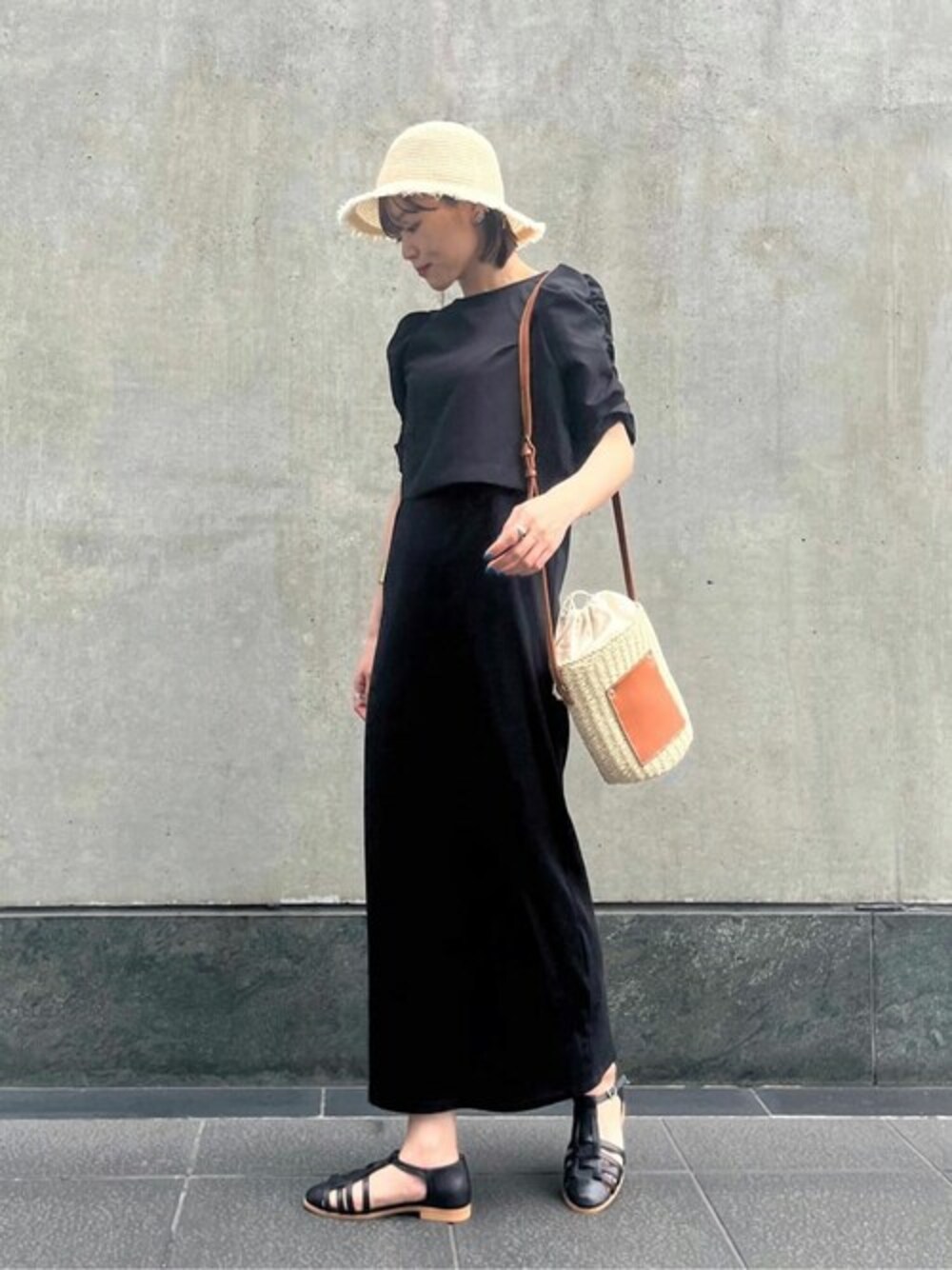 157cm / 骨格ウェーブ / ブルベ夏 【着用サイズ】ワンピース:M(フリー) 【普段サイズ】ワンピース:S・M 《セットワンピース》 素材・着心地:ワンピースはコットン混で、夏の旅行やフェスなど屋外でも快適に過ごせるサラッとした肌触り◎ ベタつく夏にはノースリワンピ1枚で着用するのもおすすめです! ブラウスはクシュッとした袖が二の腕を優しくカバーしてくれ安心感があります。重ねて着ても暑い感じはなく、涼しく着用できます! サイズ:全体的にゆとりはありますが、ストンと落ちるシルエットですっきりと見えます♡157cmで、足首がしっかりと見える丈です。 ブラウスの丈が少し短めで視線が上がるので、小柄な方もバランスがとりやすいと思います! ワンピースの背中は少し広めに開いているので、あえてカラーインナーなどを重ねて見せるのもおすすめです! スタイリングポイント:無地のワンピースに映える大ぶりのアクセサリーや、グルカサンダルなどデザイン性の高い小物を合わせました♪ 特に、ブラウスなしで着る時は存在感のあるネックレスを合わせて顔まわりを華やかにしたのがポイントです☻
