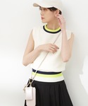 首元とウエストのポイントカラーがかわいいボトルネックニットにハーフパンツを合わせた、夏らしい爽やかコーデ♩ ニットはメッシュ生地になっていて、立体的な編み地がシンプルになりやすい夏コーデにワンポイントとして取り入れやすいです◎ 160cmで全てMサイズ着用しています!
