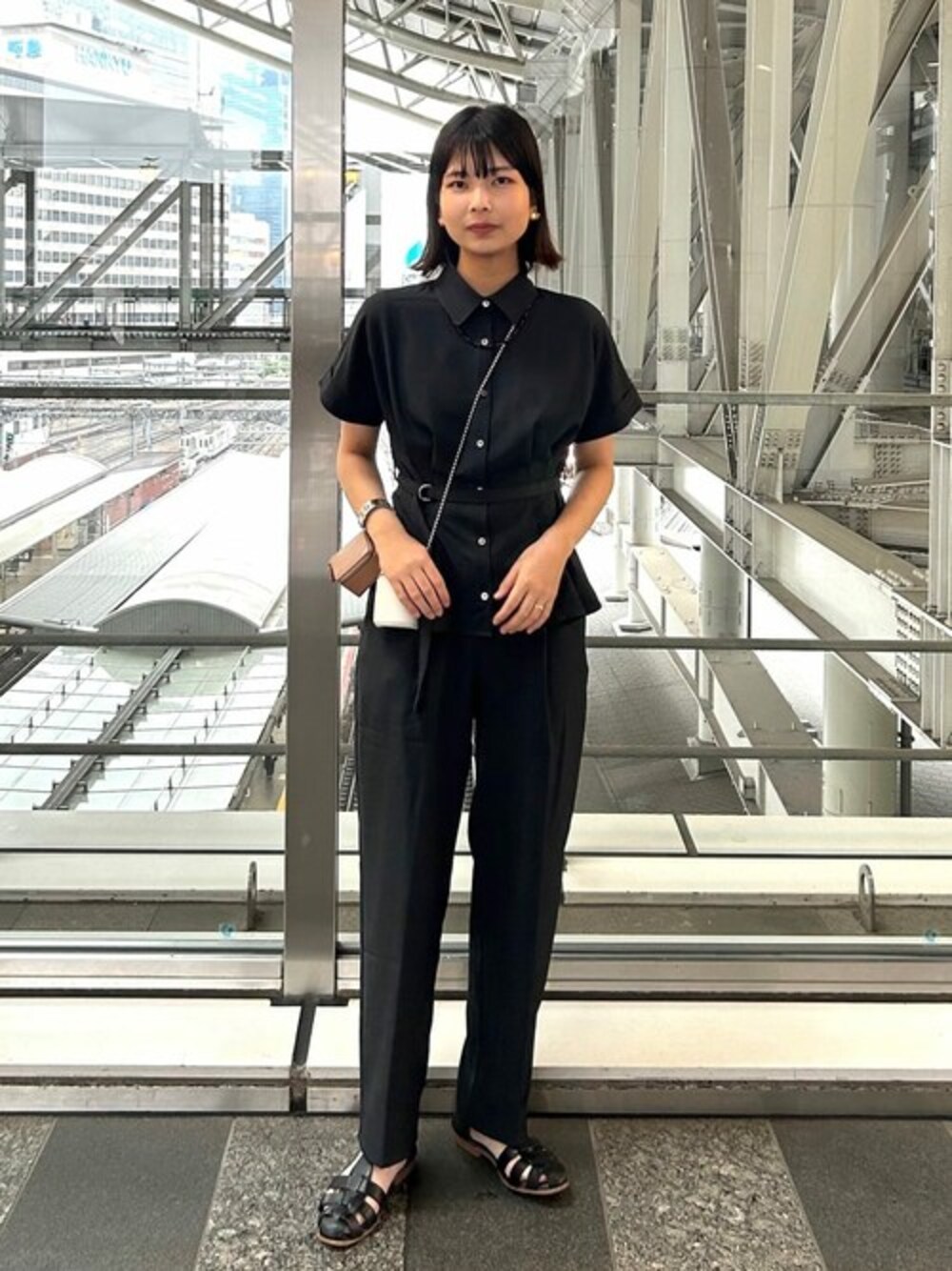 ⭐︎麻調ペプラムセットアップ⭐︎ 【サイズ感】身長168cmの私で足首がスッキリ隠れる丈感でした.!! 【着心地】 ドライタッチな柔らかい素材感なのでとても軽い着心地でした!トップスはタックが施されているのでベルトをしなくてもくびれるデザインですが、ウエストはゆとりがありました.!!パンツはしゃがむ時も窮屈感や突っ張る感覚が無く、とても動きやすかったです♡ 【スタイリングポイント】私は綺麗めなセットアップをカジュアルに着たかったので、ベルトはあえてサイドに寄せて紐を垂らし、小物はカジュアルにまとめました♡