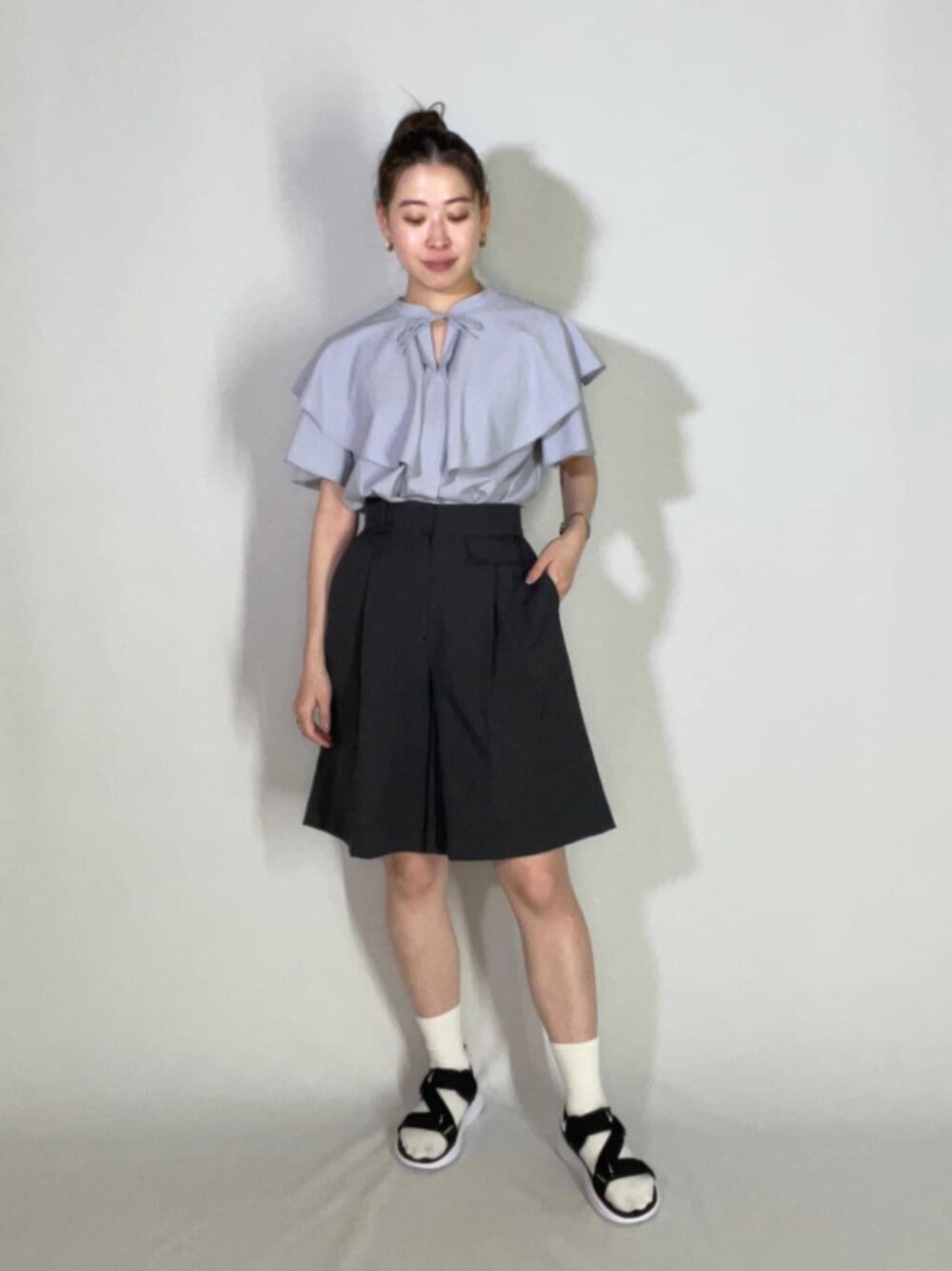 1枚で主役級のブラウス! 存在感のあるラッフルで顔周りを華やかに演出してくれます♩シンプルなボトムスと合わせるだけで決まる万能アイテム◎生地が柔らかく、ボリューミー過ぎないのもポイントですね。****年齢:20代前半/身長:157cm/パーソナルカラー:ブルベ夏/骨格:ウェーブ/普段サイズ:S〜M****