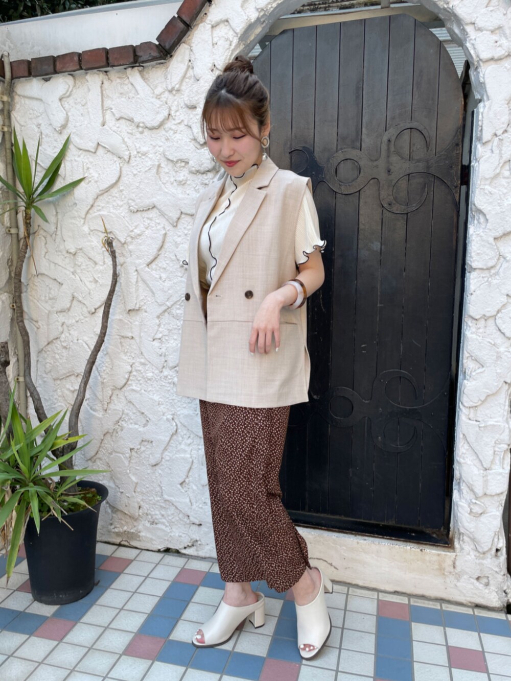 【トップス、スカート、ジレ:ワンサイズ】 ジレを合わせる事でグッとお洒落なスタイリングに♪ スカートは157cmの私でくるぶしにかかるぐらいの丈感です!ストンとしたシルエットなので花柄でも甘くなりすぎず、大人な女性にもオススメです❤︎ *****20代前半/157cm/ブルベ夏/骨格ウェーブ*****
