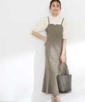 柔らかいイエローとカーキを組み合わせた大人カジュアルスタイル♪ キャミワンピースは一枚でも着れますが、私のように肌見せが得意ではない方にはシャツを羽織るのがオススメ!◎ 程良いマーメイドラインで揺れ感が可愛いワンピースです♡