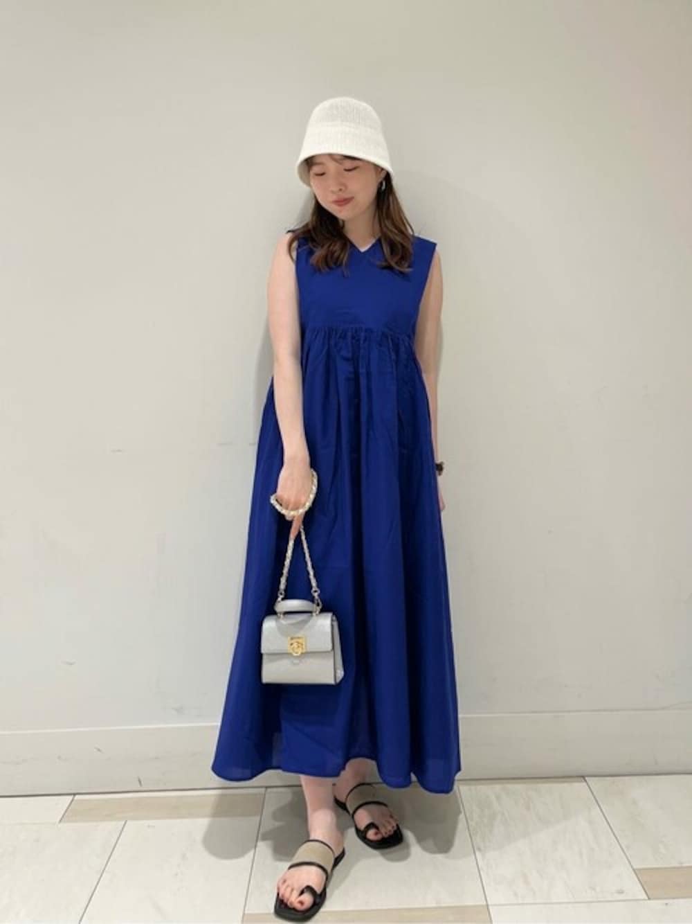 N.で大人気のコットンボイルワンピースの新作です♪ 【サイズ感】159cmSサイズ着用ですが、丈はやや長めになります☺︎上身頃はスッキリとコンパクトになる為、少しゆとりのあるMサイズの方が着脱しやすいと思います!ウエストあたりは締め付けが一切なく、リラックス感あるので夏のお出掛けの際も快適に過ごして頂けます!