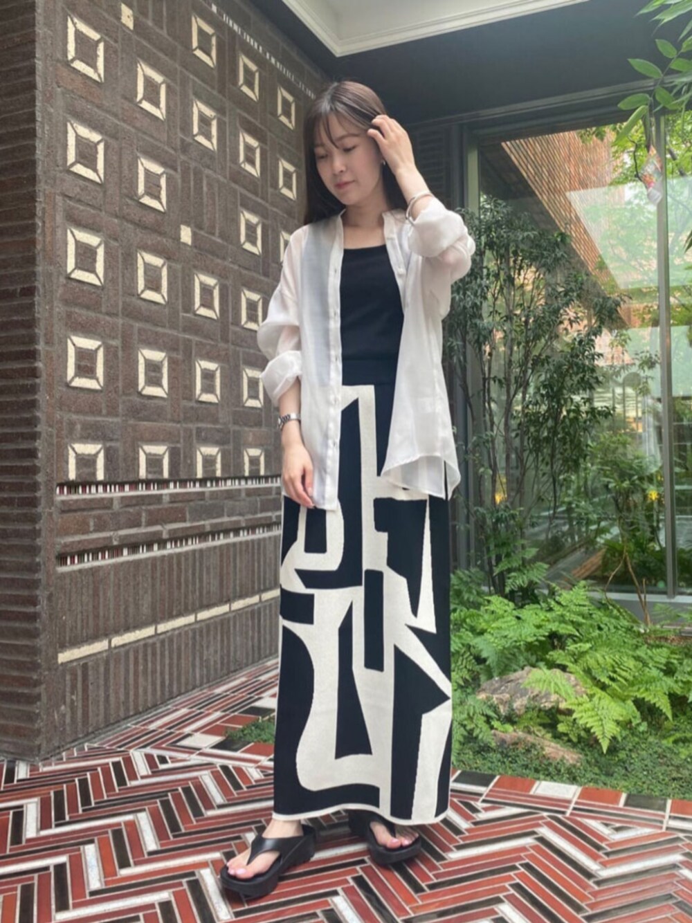 N. STAFF(N. Natural Beauty Basic* OFFICE)のスカート「◆ジオメトリックパターンジャガードスカート」を使ったコーディネート
