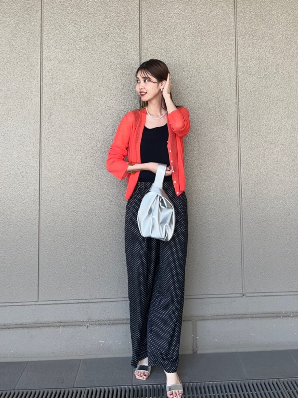 【素材感、着心地】 ふんわりとした柔らかさでサラッとした透け感のある素材です。 チクチク感もなく、汗染みも気になりませんでした! 【サイズ感】166cmで腰下の丈感です 【スタイリングポイント】 リラックス感のあるパンツとのコーデです♡ゆるっとしすぎないようにアクセサリーは大ぶりなものでバランスを取りました。 **年齢:20代前半/身長:166cm/骨格:ウェーブ/パーソナルカラー:イエベ秋**