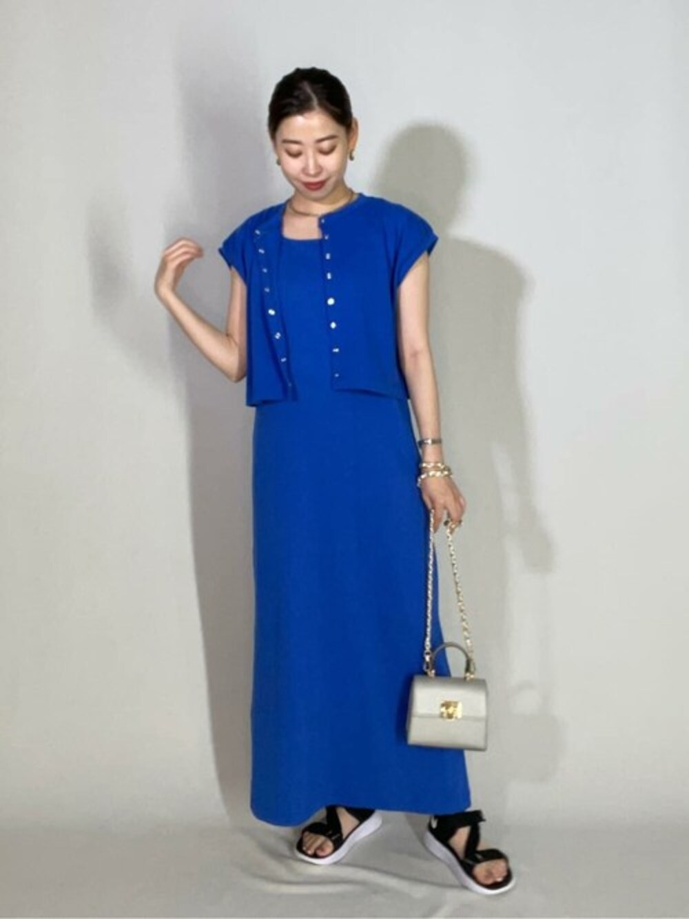 カットソー素材でリラックスして着れる大人カジュアルワンピース♡ カットソー素材で伸縮性があり、程よいフィット感なので身体のラインも気にせずお召し頂けます◎ノースリーブに抵抗がある方でも、羽織りがフレンチスリーブと肩周りをカバーしてくれるので挑戦して頂きやすいと思います! ****年齢:20代前半/身長:157cm/パーソナルカラー:ブルベ夏/骨格:ウェーブ/普段サイズ:S〜M****