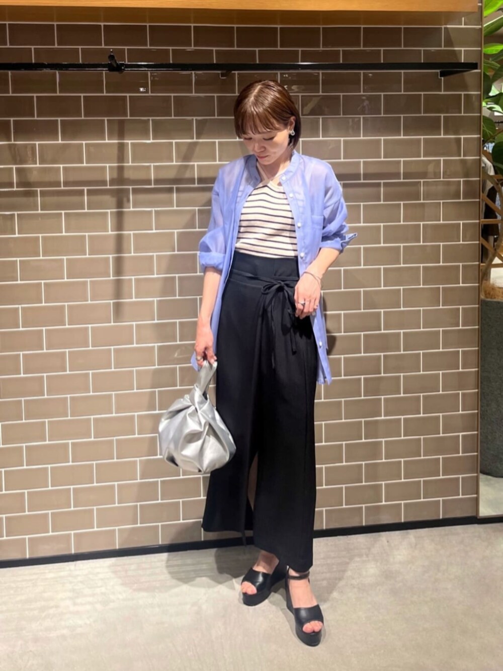 157cm / 骨格ウェーブ / ブルベ夏 【着用サイズ】トップス:M(フリー)、シャツ:M(フリー)、スカート:S 【普段サイズ】トップス:M(フリー)、シャツ:M(フリー)、スカート:S〜M 《シアーシャツ》 素材・着心地:柔らかく、軽い素材です!薄手でシワになりにくいので、コンパクトにたたんで旅行や帰省に持って行くのにもピッタリです! サイズ感:全体的にゆったりとしたサイズ感で、ヒップもすっぽり隠れるくらいの丈です。袖口をまくるとスッキリとした印象に♪ 《スカート》 素材・着心地:軽くて、シワが気になりにくい素材です!深めのスリットで、歩く時も快適です♪スリットは膝くらいまでなので安心◎ サイズ感:157cmで、Sサイズ着用。足首がギリギリ隠れるくらいの長めの丈で、タイトスカートでも固い印象にならずカジュアルに使えます! スタイリングポイント:発色な綺麗なシアーシャツを主役にしたコーデ♡ インナーはホルターネックを合わせてトレンド感をプラスしました!