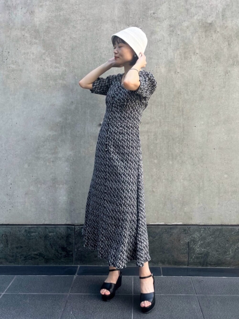 157cm / 骨格ウェーブ / ブルベ夏 【着用サイズ】ワンピース:S 【普段サイズ】ワンピース:S〜M 素材・着心地:細かいプリーツ素材で広がりすぎず、大人な印象で着用できる花柄ワンピース♡ 持っただけで分かるくらい軽い素材で、シワなども気にせずに使えるのでポルタでは旅行用に購入された方もいらっしゃいます◎ 細身なシルエットですが、下の方までボタンを開けられるので着脱も楽ちんです! サイズ感:157cm、Sサイズ着用で足首が完全に見える丈なので、150cm前後の小柄な方にも着用して頂けると思います!ウエストは後ろのレースアップ部分で好みに調節できるので、ゆとりを持たせることもしっかりと絞ることも可能です☻