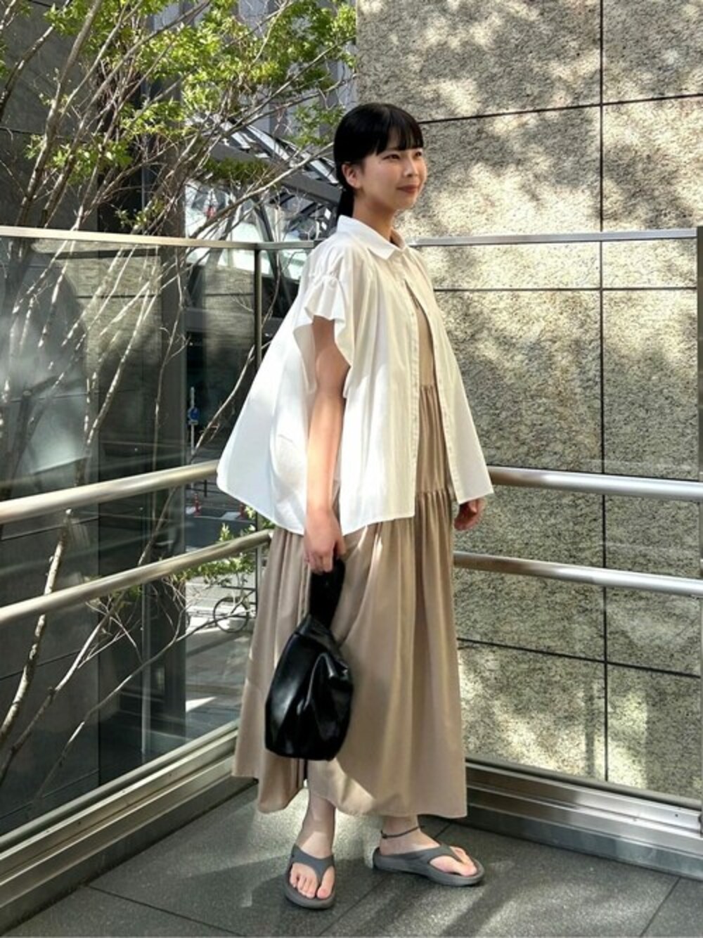 ⭐︎ボクシーフォルムシャツ⭐︎ 【サイズ感】身長168cmの私で腰周りが隠れる丈感でした.!! 【着心地】空気を含んだような肌離れしたデザインで、まるで着ていないかのように軽いです!! 袖口が二の腕あたりにくるのと、後ろのタックにより背中に布が当たらないので、汗をかいても安心です!! 袖のデザインとボリューム感が最高に可愛いです♡ 【スタイリングポイント】少し甘めな大人フェミニンコーデに挑戦してみました.!! キャミワンピの上からシャツを羽織りとして着てみました!! 華奢見え効果抜群でお気に入りです♪