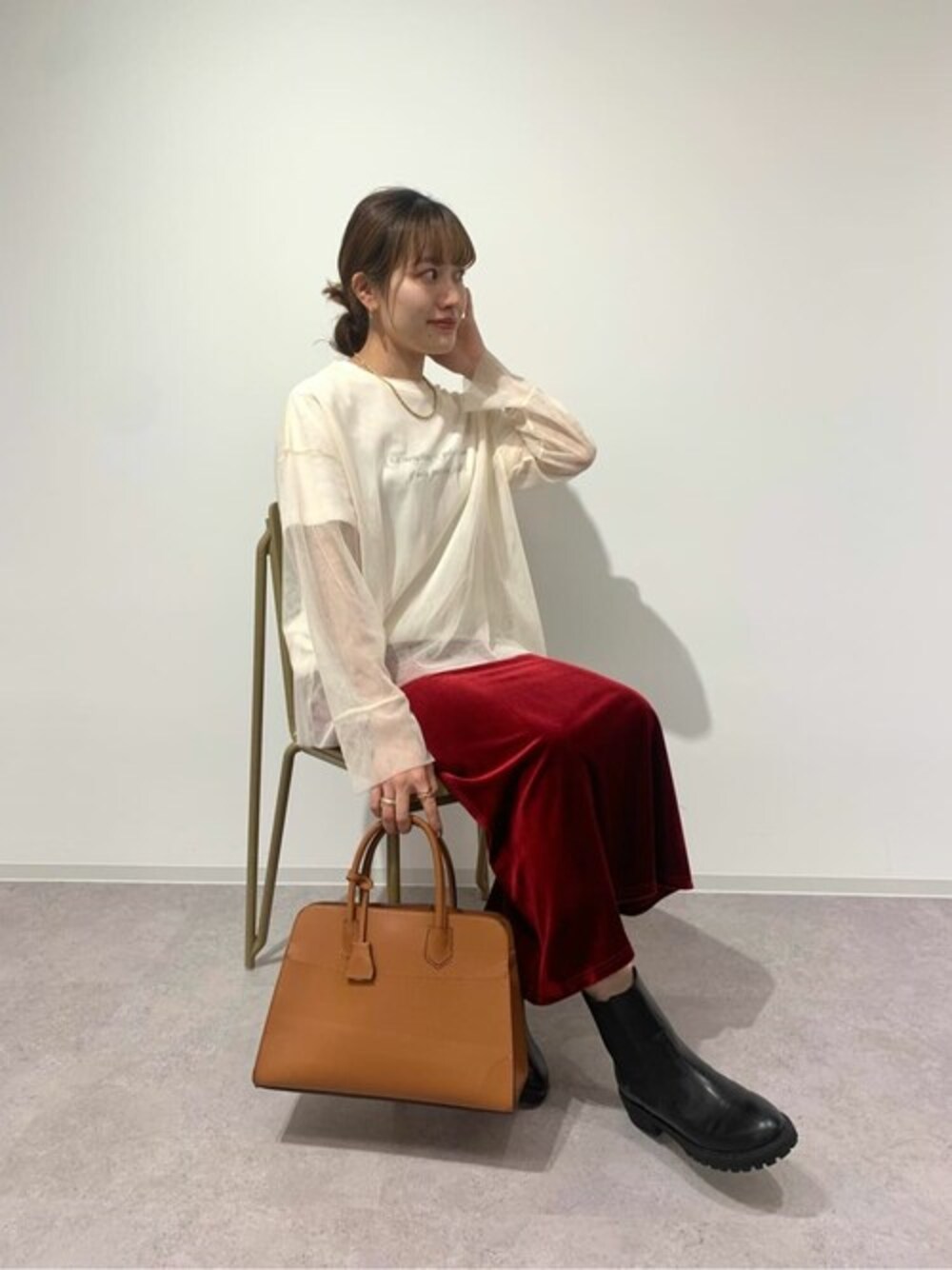 【着心地・サイズ感】ベロアスカートは程よい光沢感で上品みえ抜群。コーデにプラスするだけで秋らしさを取り入れられます!ウエストは幅広なデザインなのでお腹周りをスッキリとお召頂けます♪ 【スタイリングポイント】ボルドーのベロアスカートを主役に休日の大人カジュアルコーデに挑戦してみました。シャツやゆるっとしたニットを合わせても可愛いのでこれからのシーズンにピッタリです☺︎♡
