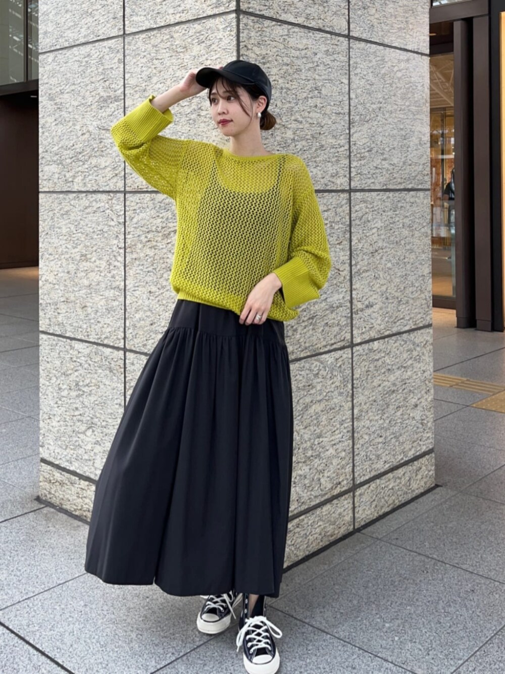 【素材感、着心地】 コットンの入った柔らかな素材感です。 裾と袖口に細めのリブが入っているので腰回りもフィット感があります◎ 脇部分にゆとりがあるので、レイヤードしても窮屈感もなくベタつきも気になりませんでした! 【サイズ感】 166cm Mワンサイズでヒップ下の丈感です 【スタイリングポイント】 トレンドの長め丈のキャミワンピとレイヤードした大人カジュアルコーデです♡ イエロー×ブラックで軽やかな秋コーデを意識しました **年齢:20代前半/身長:166cm/骨格:ウェーブ/パーソナルカラー:イエベ秋**