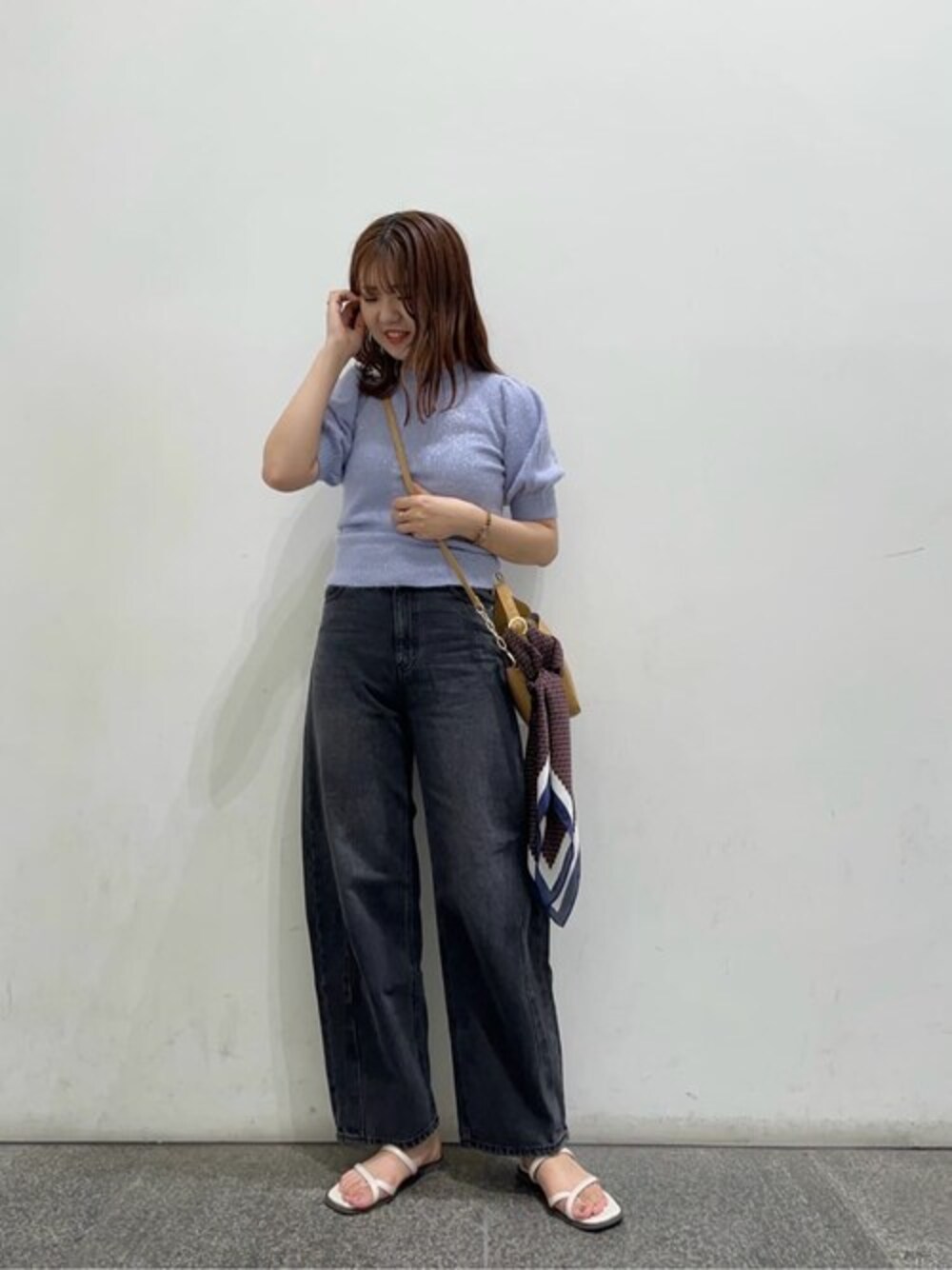 ダボっとシルエットが可愛いデニム♡カーブラインが綺麗なデニムはシルエットが綺麗でカジュアルにもキレイめコーデにも使える1枚です!(Mサイズ着用)フェザーニットもキラキラが可愛くてスカートでもパンツでもキャミワンピのインナーにも合わせやすい1着です。*****164cm/イエベ秋/骨格ナチュラル*****