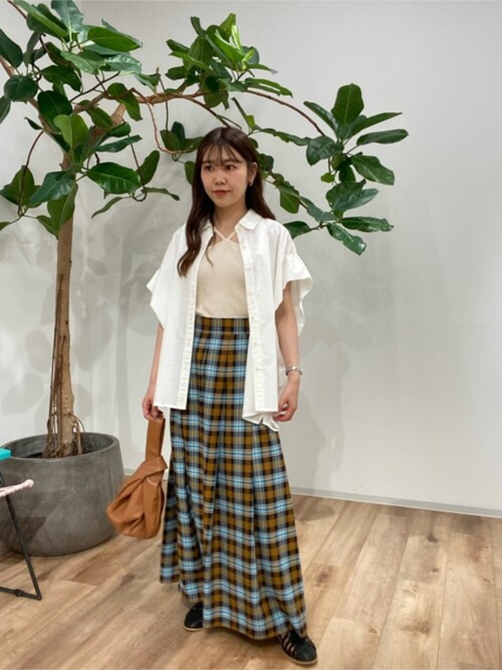 秋先取りチェックスカート!♡ 【スカート】ロング丈のチェックスカートは、カラーの配色がとっても可愛いです!♡秋といえばチェックスカート着たくなりますよね!存在感抜群なので、トップスはシンプルな物と合わせるのが◎Mサイズ着用してますが、サイズ展開もS lineがあるので低身長の方でも安心です! 【シャツ】柄、色展開豊富なシャツです!♡私は前開けで羽織として使用しました!ワンピスの上から羽織っても可愛いですし、前を止めてオーバーシャツとして使用しても可愛いです!♡シンプルなので、お仕事などオンオフ両方使用できるのが嬉しいポイントですね♪