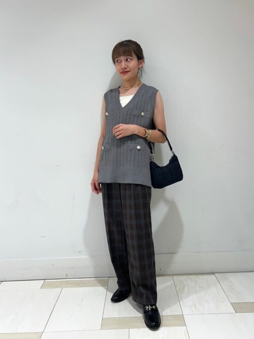 【着心地・サイズ感】ゴールド釦がレトロなジレはスポンジのような軽い生地で1枚でもチクチク感なく着れます☺︎♡ N.定番のワイドパンツは新色が登場。丈がやや長めなので身長161cmでSサイズ着用しています。センタープレスで脚長効果抜群です! 【スタイリングポイント】大人のトラッドスタイルに挑戦してみました。パンツもきれいめブラウス合わせでオフィスシーンにもお使い頂けるのでこれからのシーズンに重宝します☺︎