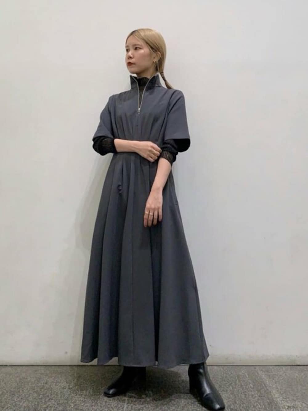 インナーやシューズをブラックでまとめて、モードなイメージでスタイリングしてみました。 一枚着るだけで、様になる万能ワンピースです。 156cmで足首くらいの着丈になりました。
