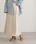 N.のこだわりがたっぷり詰まったボーダートップスは、今年らしいホルターネックとフレアスリーブがポイントです◎カジュアルになりがちなボーダーも、フェミニンにまとめられる女性らしいシルエットです☺︎スカートは、てろんとした光沢感のあるサテン地で、ゆるやかに広がるAラインシルエットで着回し力も抜群です♩