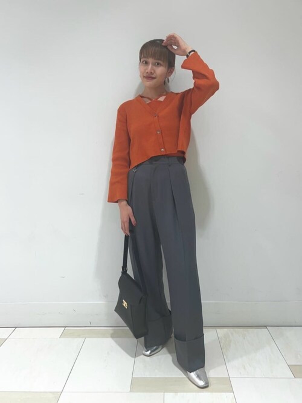 【着心地・サイズ感】大人気のアンサンブルニットが入荷しました!ショート丈のカーデなので腰位置高くすっきり見えします☆ Vあきカーデからちらっとインナーが見えるのがヘルシーで可愛いです! パンツは161cmでくるぶしが隠れる着丈です!丈が長めですが足元ヒールで合わせるとスタイル良く見えます!ワイドなシルエットなので太もも周りもゆとりがあり、サラッとお召しいただけます^_^ 【スタイリングポイント】シルバーのブーツを差し色にきれいめカジュアルなスタイリングにしてみました!