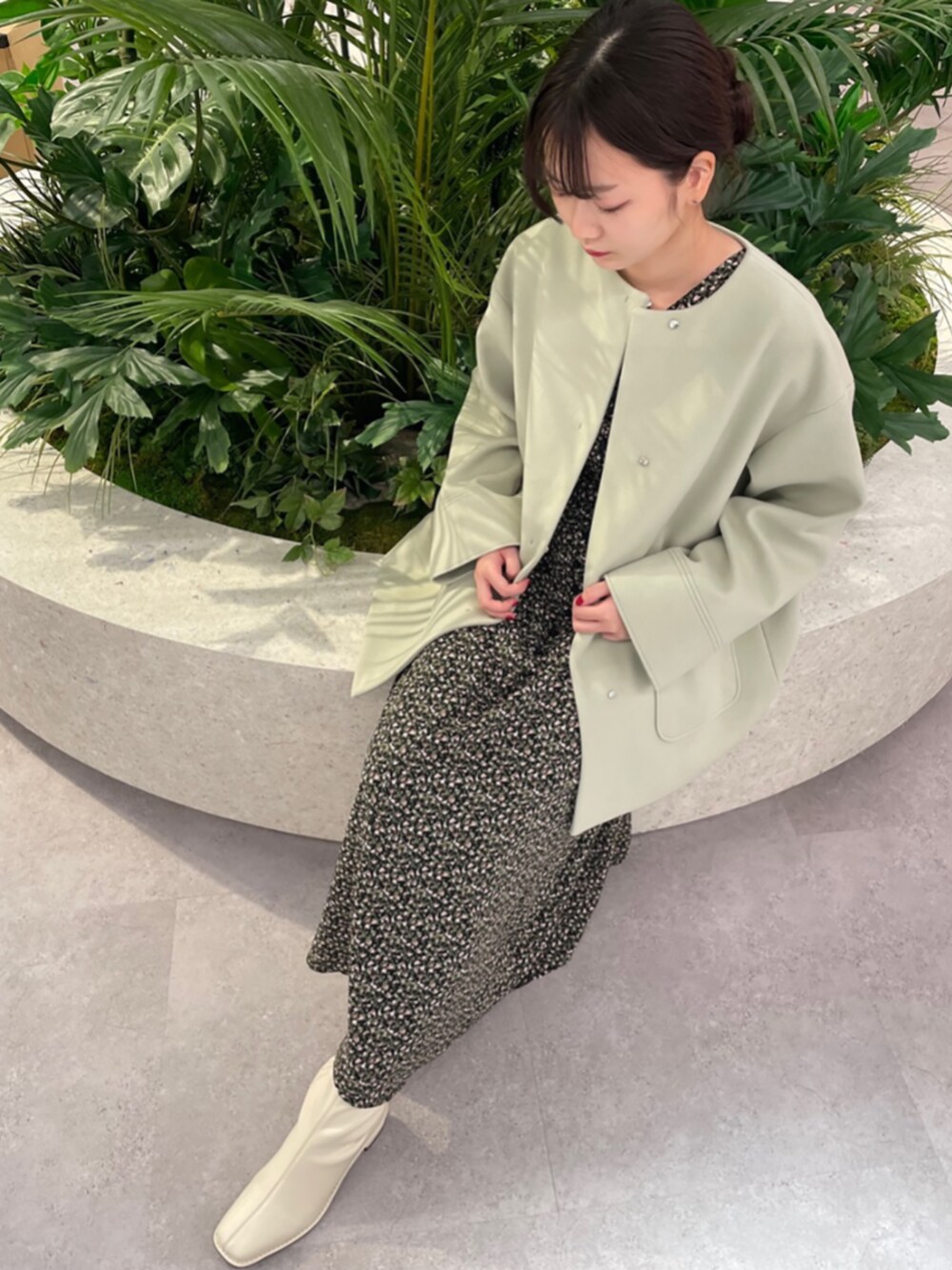 とてもシンプルで上品なデザインのコートなので、オンオフ兼用で幅広く使うことができます!ノーカラーで襟元がすっきりしているのでストールなどもかさばらず着用できます!Mサイズを着用しましたが、丈感は160㎝の私でお尻が隠れるくらいでした♪ジャストサイズで着たい方や、低身長さんはSサイズがオススメです!生地は軽く着心地も抜群で、薄すぎず丁度いいのでたくさん着たくなります♪