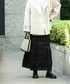<すべてMワンサイズ> 毎年人気の高級ウール・ハミルトンのニットは、厚地てあたたかく、ベーシックなシルエットながら、こなれ感があります。クルーネックなので首の詰まったインナーを合わせの相性◎今回は再入荷した人気のウェーブパターンのシアーインナーを合わせました。 スカートはほんのりシアーで、少し光沢があります。マーメイドシルエットようにも見える裾ティアードの動きがかわいいです♡ [身長151センチ/骨格ウェーブ]