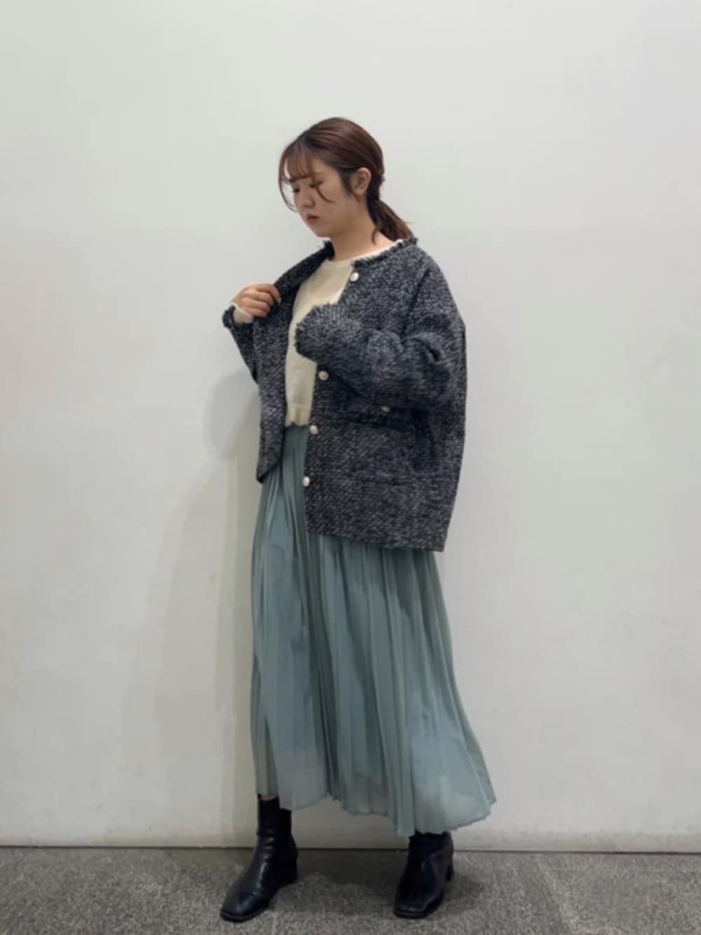 今の時期に大活躍なツイードジャケットに揺れ感が可愛いスカートのコーデです◎ジャケットはMサイズ着用、スカートはMのワンサイズで足首が出る丈感です!*****164cm/イエベ秋/骨格ナチュラル*****