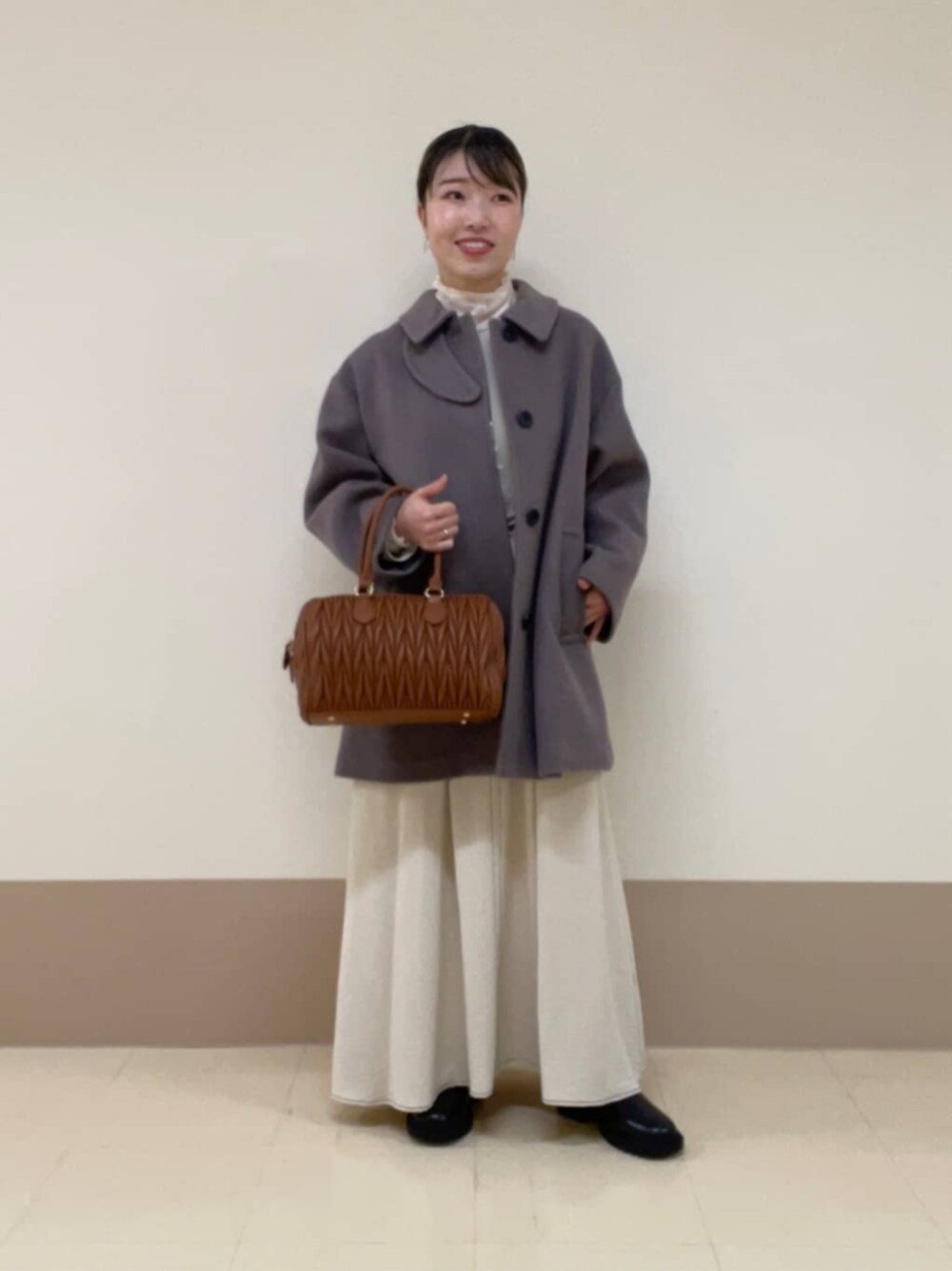 <コート・ワンピースSサイズ> お尻まで隠れるミディコートは、襟の見せ方で雰囲気も変えて楽しめます。襟を立ててボタンをとめるとよりモードな印象に◎ ワンピースはステッチがアクセントになり、1枚でもメリハリがあります。リボンは後ろでも結べるのでぜひお試しください♡ [身長151センチ/骨格ウェーブ]