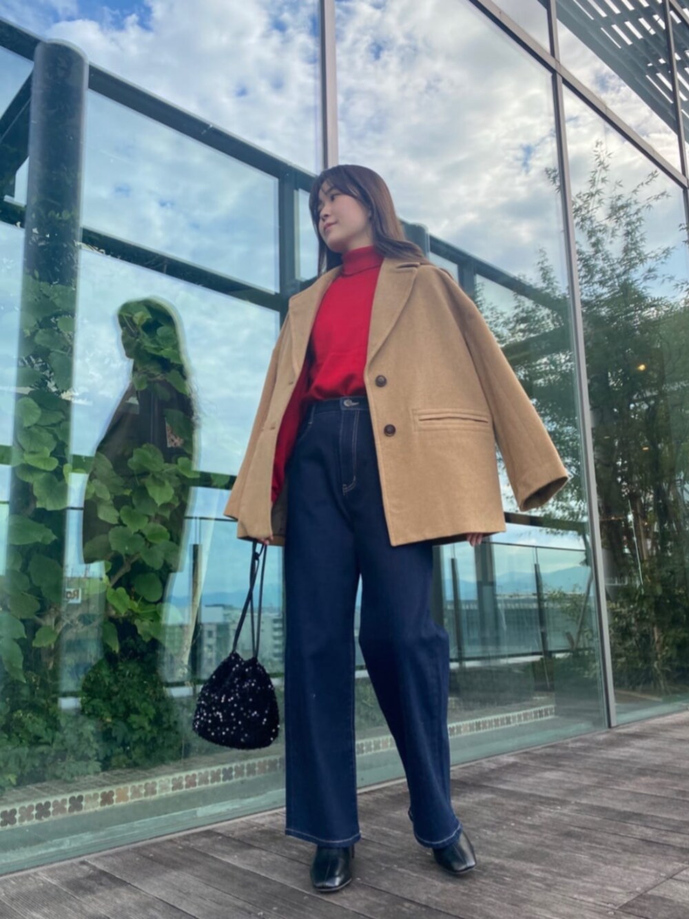 ミディ丈でお尻もすっぽり隠れ冬の始めから大活躍するコートです♡ お袖周りもゆったりしており厚手のニットを着てもごわつき無いです◎ 鮮烈カラーを差し色として加える事で表情まで明るくみえ、デニムと合わせカジュアルなコーディネートにしてみました︎︎☺︎ 159cmでコートSサイズ着用