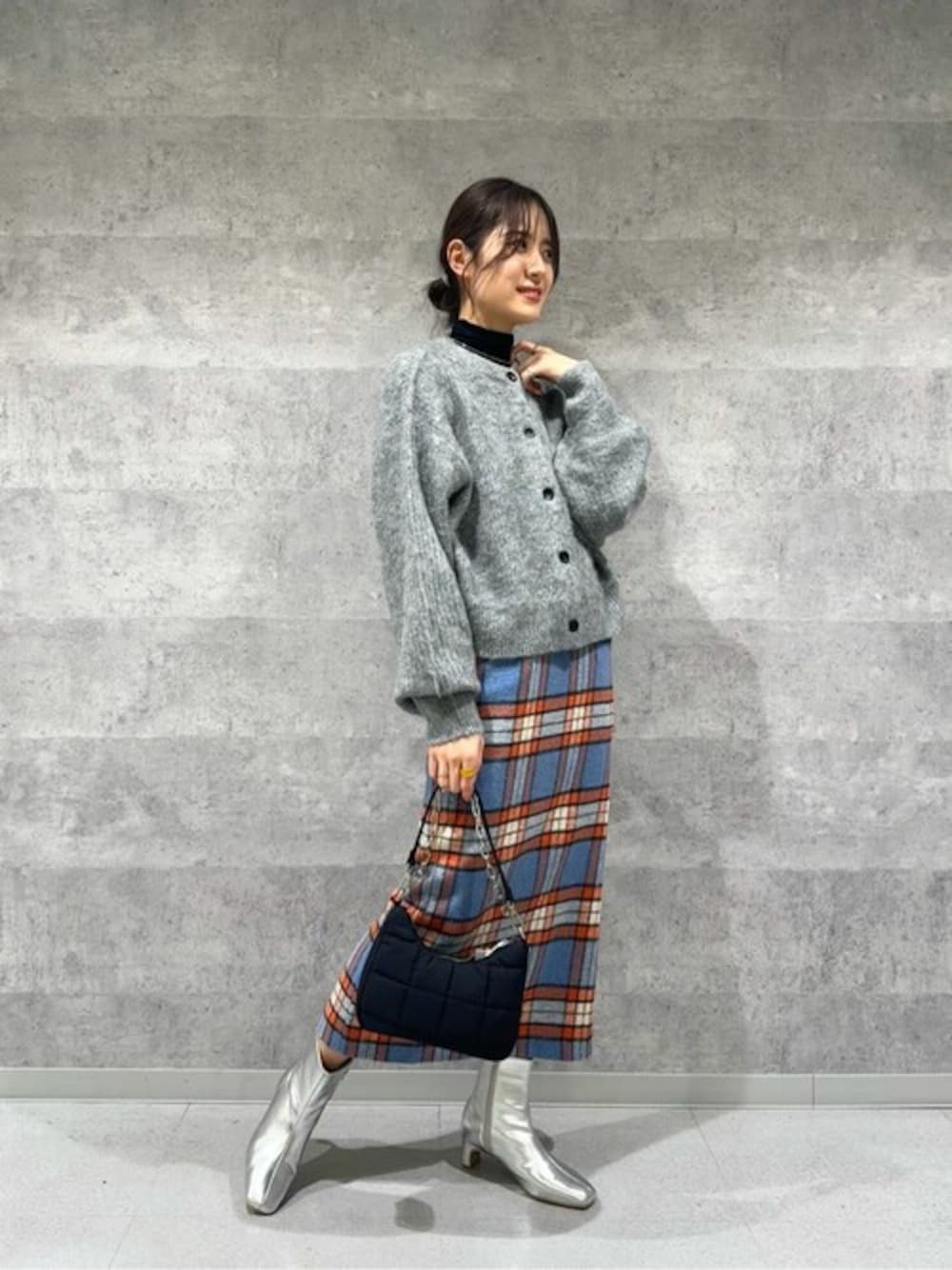 ○クルーネックフェザーカーディガン 今季大注目のフェザー素材を使ったニットカーディガン♡ 【サイズ感】Mサイズ 腰周りがしっかり隠れる丈感で、肩周りはゆったり。たっぷり感のあるお袖もとっても可愛い1枚です♫ 【素材】 もっちりふわふわな触り心地で、肉厚な生地感。 ウールも入っているのでしっかりとあたたかいですよ◎ 【コーディネート】 大柄でなチェックのタイトスカートに、グレーのシャギーカーデを合わせ、甘さ控えめに仕上げました♫ 触りたくなるもちふわニットは、デートにもピッタリです♡ staff: 20代前半/161cm/イエベ春/骨格ナチュラル