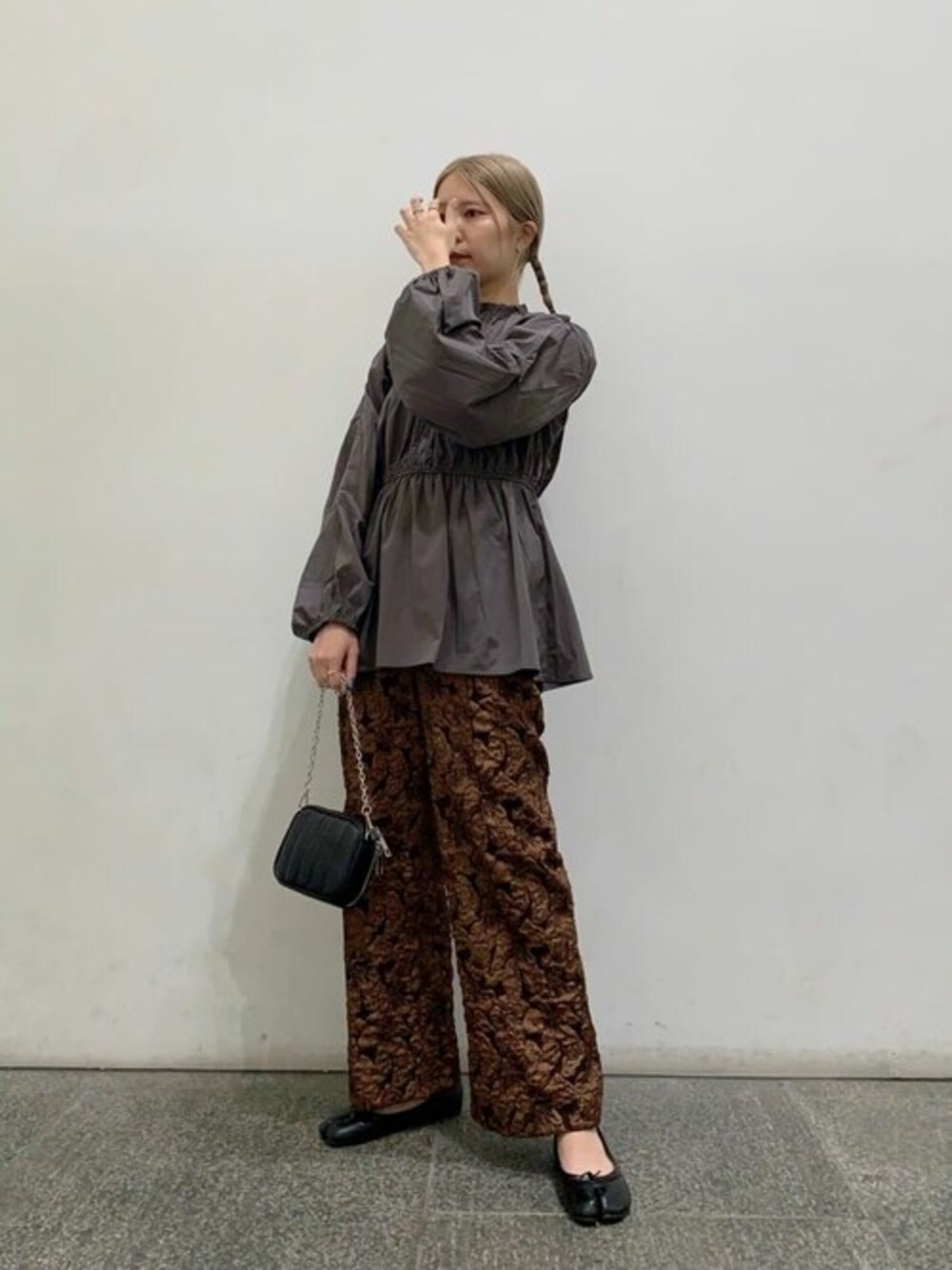 【ブラウス】シャーリングが贅沢な一枚で大人かわいいブラウスです。デニムでカジュアルに、タイトスカートやテーパードパンツできれいめにも合わせて頂けます。 【パンツ】肉厚に見えますが、意外とすっきりとした素材感です。足がスラっと見える着痩せ効果抜群のパンツになります。一度お試し下さいませ。